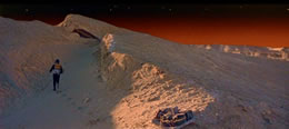 Someone at Criterion must be a huge fan of this film, as they gave it the red carpet treatment as one of their most well-appointed laserdisc releases and then, after an agonizingly long wait, finally spiffed it up with an anamorphic upgrade for DVD and then an even more eye-popping Blu-Ray. Along with The Blob, Fiend without a Face, and Richard Gordon's fabulous Monsters and Madmen set, this is a great example of how well they can treat nostalgic genre product that might seem out of their repertoire at first glance. The real selling point here is the visuals, of course, and on this front the Blu-Ray comes through with flying colors. The surreal landscapes (often accomplished using the blazing blue desert skies as a natural sort of greenscreen) aren't the only beneficiaries, as many of the interior cave shots have a wildly colorful lighting scheme that anticipates the following year's even more insanely saturated Planet of the Vampires from Mario Bava. Audio is still original mono and sounds just fine, especially the uncompressed BD option. Extras for both versions are the same (apart from some script excerpts via DVD-Rom only on the DVD), with the biggest draw here being the audio commentary with Melchior, Mantee, Lundin, production designer Al Nozaki, and historian and FX designer Robert Skotak, with archival excerpts from a '79 interview with the late Haskin integrated as well. Obviously the effects are the chief point of discussion here along with comparisons to War of the Worlds (whose Martian ships have an unexpected influence on this film in the third act). The 19-minute "Destination: Mars" featurette (which has nothing to do with the other sci-fi film of that name) compares the film to what is now known about the Red Planet (some accurate, some way off, of course), while a, ahem, "song" Lundin wrote about the film gets the music video treatment. Other extras include the theatrical trailer, a gallery of stills and storyboard/conceptual art, and a liner notes booklet containing an essay by space expert Michael Lennick, Melchior's dialect dictionary for the ultimately abandoned langage of the Yargorian characters, and his checklist of notes about the planet setting. Not qutie the collection of pulpy thrills you might expect from the title, this still-fascinating example of pre-2001 space travel on film still makes for essential viewing for space age film fans.
