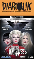 In 2020, Blue Underground paid another visit to this beguiling classic with an expanded three-disc edition featuring a 4K UHD, an upgraded Blu-ray, and a soundtrack CD, housed in a flashy lenticular slipcase. Ported over on both the UHD and Blu-ray are both commentaries, the three featurettes, and radio spots; in addition to the usual U.S. trailer, you also get a very different European trailer (as Promise of Red Lips) and a flat-out amazing French trailer (with optional English subs) that must have caused heart palpitations back in '71. In a nice gesture, you also get the American main title sequence (unseen since the VHS release back in the '80s) with torch song-style vocals added over that familiar melody ("Winnnngs, winnngs!"). A massive 123-image gallery features a wide array of international poster art, stills, lobby cards, production photos, video sleeves, and other goodies including Kümel-related snapshots. The biggest new extra here is a third audio commentary with Devil's Advocates: Daughters of Darkness author Kat Ellinger (who also, appropriately enough,