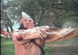 While the gang is camped out one night by the fire, the professor shares with them the terrifying story (shown in flashback) of Prince Nonoc, whose love for a virgin sacrifice doomed him to an eternity of mummyhood protected by a sacred scroll. Of course the trespassers press on anyway and are soon being picked off by the skull-faced mummy, armed with a bow and arrow.