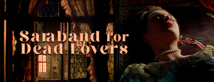 distinctive and internationally successful name for realistic dramas and emotionally powerful combat films with a wave of much-loved comedies about to start in 1948. That same year they also entered the saturated, eye-popping world of three-strip Technicolor with the opulent Saraband for Dead Lovers, a direct attempt to outdo their closest competitor at the time, Gainsborough Pictures, best known for their black-and-white costume melodramas. They even recruited Gainsborough's biggest leading man, Stewart Granger, to star along with a stable of recognizable Ealing favorites, and the result was a visually ravishing production that earned an Oscar nomination for its art direction (but somehow not for its cinematography by the legendary Douglas Slocombe, an Ealing regular). Based on a mostly factual historical novel by Helen Simpson, the film was placed in the capable hands of one of its finest directors, Basil Dearden, who had become something of a VIP there after dazzling viewers with his stylish touch in The Halfway House, The Captive Heart, Frieda, and especially the framing device for Dead of Night.