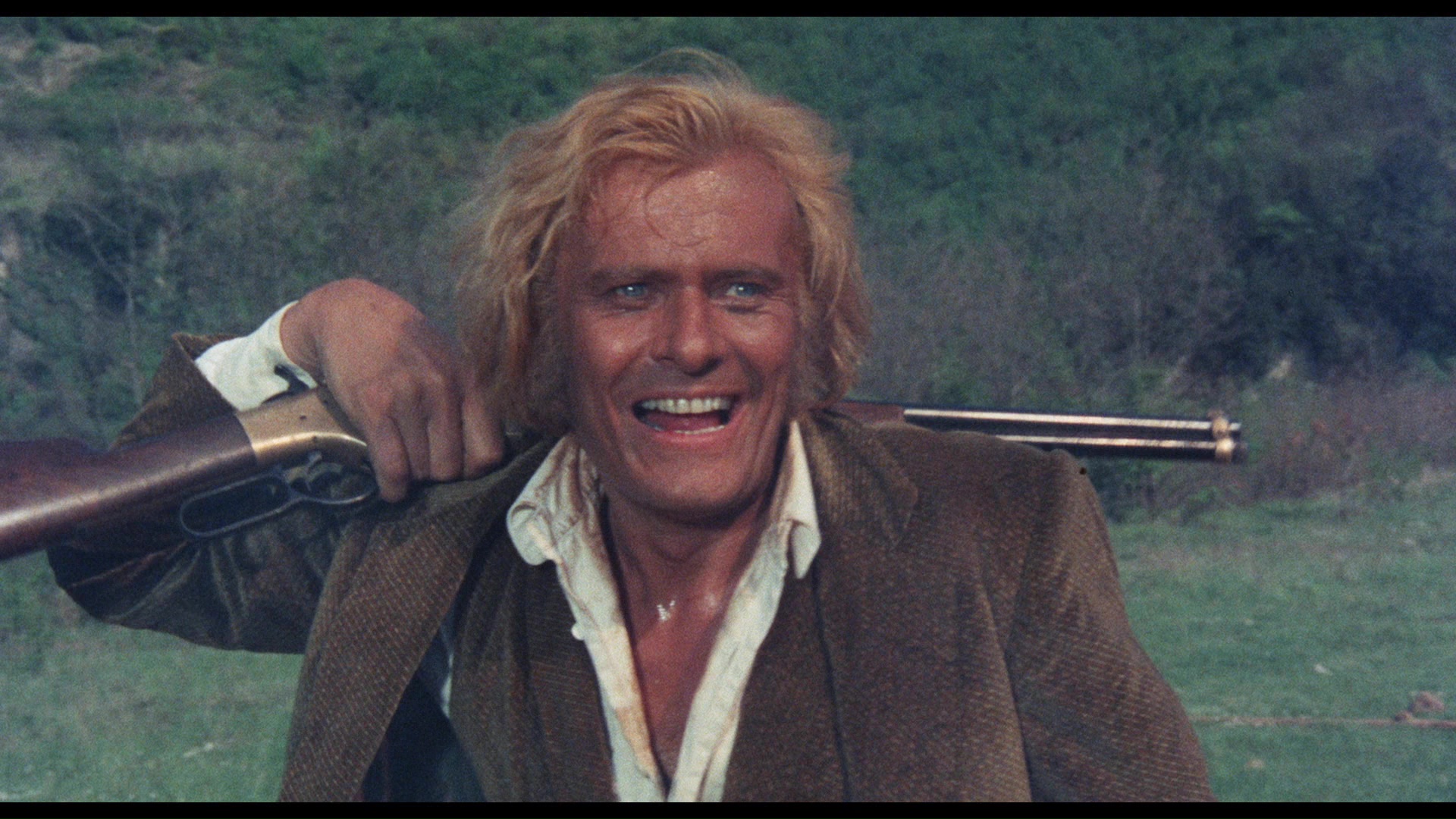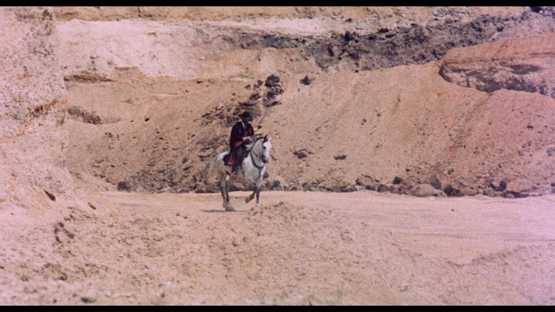 character, and plenty more. Next is a new interview with Blanc, "Lady Colt" (29m21s), with the much-loved icon of horror and erotic cinema (who's shot with some rather unflattering lighting here) noting her first time doing a western with Anthony Steffen (and learning how to ride a horse), the distracting nature of her cleavage in this film since she was pregnant at the time, the lax treatment westerns received from censors (no kidding!), and the treatment of male vs. female stars at the time. Finally, "A Very God Job" (15m16s) features actor and agent Tony Askin chatting about his career back and forth in front of and behind the camera as well as his working relationship with Carnimeo. A 23-image gallery is also included. The deluxe box packaging offers reversible sleeve options including new artwork by Matthew Griffin, plus an insert booklet with essays by Roberto Curti and a spaghetti western timeline by Howard Hughes.
