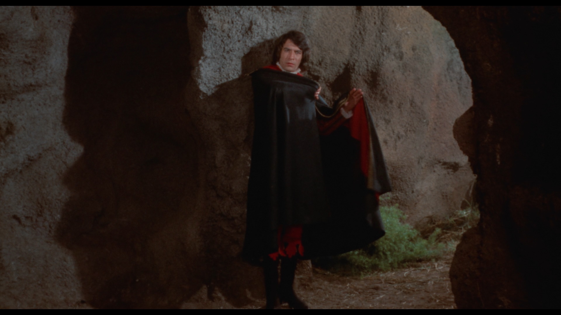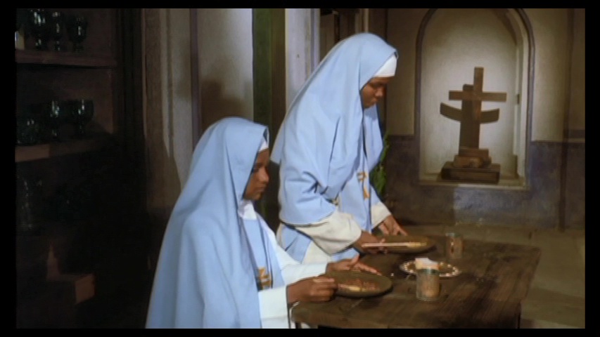 on and mostly off over the years in between) with a choice of two viewing options. The first is a fresh scan of what is referred to as "pre-print materials" on the menu but advertised as a new 4K scan of the negative. In any case, it looks excellent with nicely saturated color and the most detail by far of any available option. However, as the menu notes, it has an intermittent "optical fault" that was not fixable and so a separate scan of a theatrical print was commissioned. The latter looks, well, like a print with a grainier appearance and less impressive color; it may be more technically faultless but really the first option is better and any imperfections are minor enough. The DTS-HD MA Spanish audio is in solid condition throughout and comes with optional English subtitles. Both prior featurettes are carried over here, plus the usual Mondo Macabro promo reel, but there's also a new audio commentary by Diabolique's Kat Ellinger and Samm Deighan; anyone familiar with their past collaborations should know that they have a great rapport together and have an infectious glee that's present here as well. As they note from the outset there's very little tangible production material out there about this film, so instead they take the critical reading approach to contextualize this in the grander scheme of Mexican horror, nunsploitation, Satanic cinema, and much more.