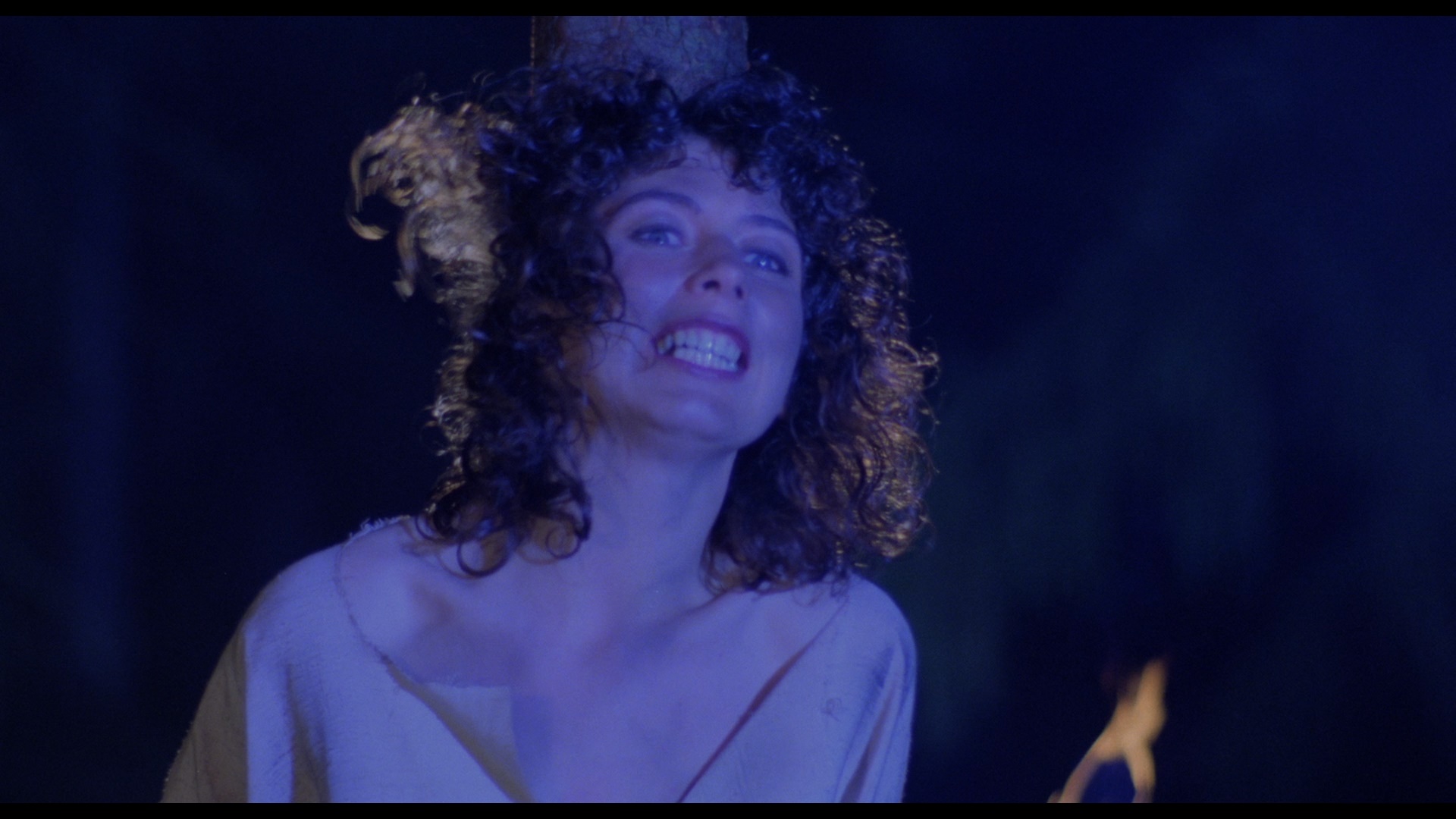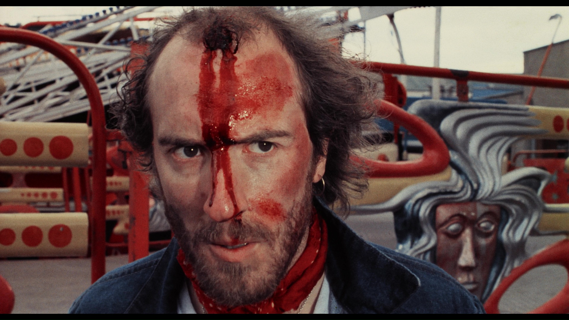 Just in time for New Year's Day in 2019, Vinegar Syndrome made a surprise announcement of this title directly available only via its website complete with a limited edition slipcover. The transfer is listed as being a 2K scan from 35mm archival elements, and an opening disclaimer notes that only one usable theatrical print remains in existence (and the negative was accidentally destroyed ages ago). With that caveat in mind, the results here are still very pleasing and a big step up from the DVD; the framing is adjusted to feature more information on the sides and less on the top and bottom, resulting in more balanced and effective compositions. A few bumps and splices are evident throughout, with the bulk of the damage evident in the second reel (particularly the shipwreck sequence, which suffers from some obvious staining and scratching). The actual quality is impressive though with excellent color and detail, and the damage isn't more distracting than what you'll find on any number of other genre releases. The DTS-HD 1.0 English mono audio (with optional English SDH subtitles) is also good considering the shape of the source. The sole extra is an audio commentary by Warren, who seems to be having fun talking about the fairground arrangements, the madness of shooting on boats, the in-camera visual effects for the supernatural sequences (including a cool Bloody New Yeardust head), the arduous physical demands on the actors, and the various crazy ideas he and his co-writers felt free to incorporate into this crazy, very entertaining party movie. He's expressed Bloody New Yeardisappointment with the end result of this film elsewhere (including the interviews elsewhere on the Indicator box), but it's nice to hear him in pretty good spirits about it here.