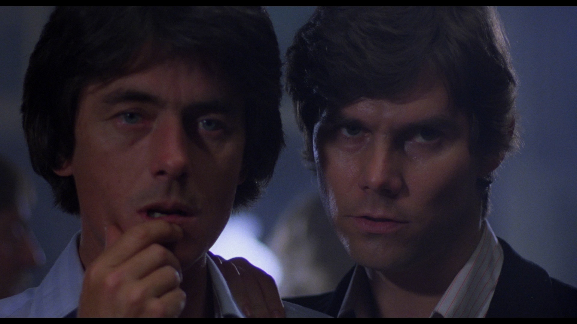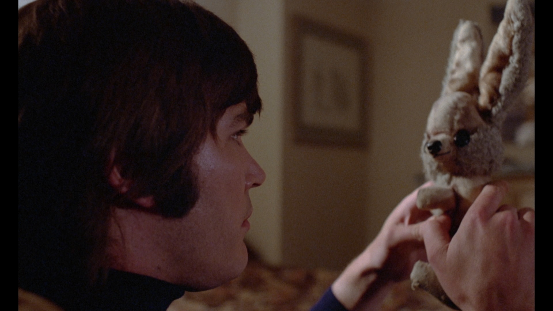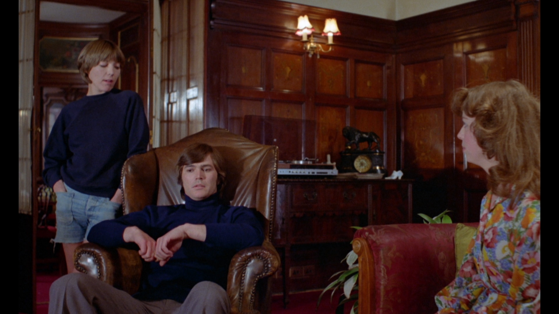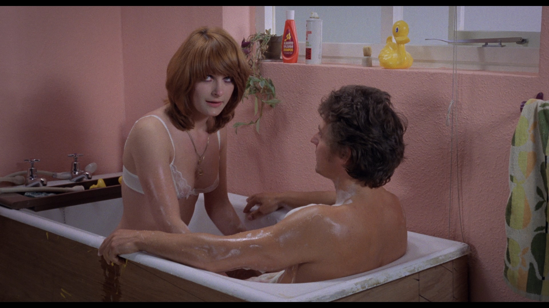The Indicator release marks the film's second Blu-ray appearance and this time features no overlap at all in terms of extras apart from the trailer. The Warren-Rigby commentary comes back into circulation here for the first time in many years, and a new Warren video interview can be found in part one of the British Entertainment History Project (60m17s) with Warren by Martin Sheffield in 2018. Encompassing his work up through 1975, it's an extensive, very detailed account of Warren's life from childhood through his amateur films, his work up the industry ladder to becoming an editor and creator of commercials, his work on Her Private Hell, and his memories of many entertainment heavyweights from the era. The vintage "Keep on Running" (27m32s) is also brought back from the Anchor Bay release with Warren, Faulkner, Marcel, and a returning Pearce chatting about the making of the film, though the sound isn't the greatest. A little bit of raw production footage (2m21s) features Warren chatting over preparations for the bizarre cross-dressing dinner scene, and an image gallery features 55 images of stills and international theatrical and video art. That's not all though; Warren's early B&W short film, "The Bridge" (6m52s), is an interesting and ambitious little DIY war film set in 1942 France and made when he was 20 (with his dad starring), and it comes with optional Warren commentary and a bit of making-of footage (1m31s) with Warren returning for commentary duty. Then comes a batch of test footage for the unrealized film Carol (2m53s), again with Warren commentary, followed by another short, the Richard Lester-esque slapstick short "Drinkin' Time", complete with optional Warren video intro (3m22s). Finally comes "Whipper Snappers" (3m59s), with Warren chatting about the background and creation of a kid's toy TV commercial he made around the same time. Image-wise this one, like its companions in the Indicator set, is touted as a 2K restoration approved by Warren; it appears to be derived from the same scan but is darker, richer, and more intensely colorful, though (as with Terror below), it features a bit less image info on the sides. (ADDITION: The release has been slightly delayed to open the framing to match that on the U.S. editions. More details forthcoming.)