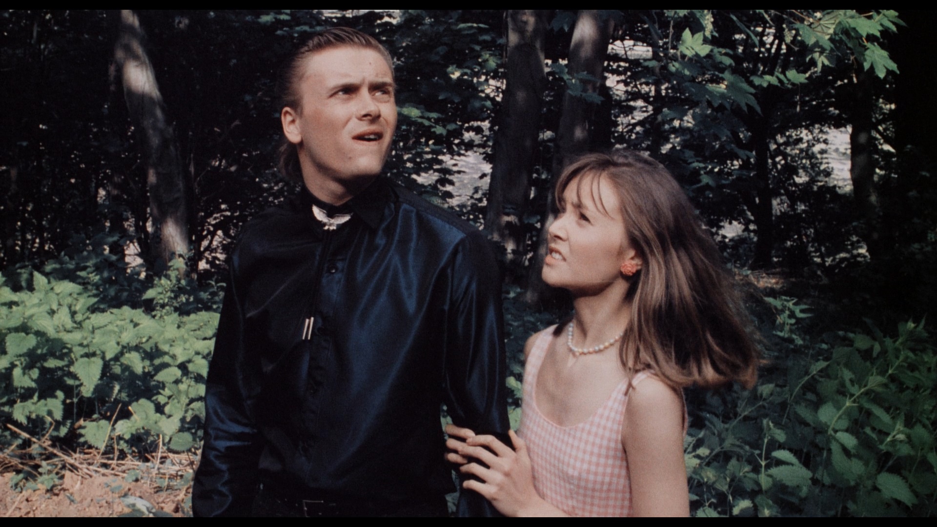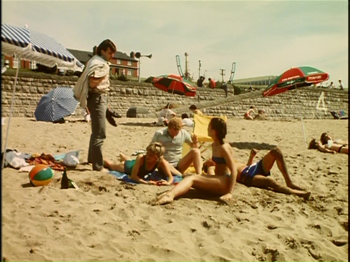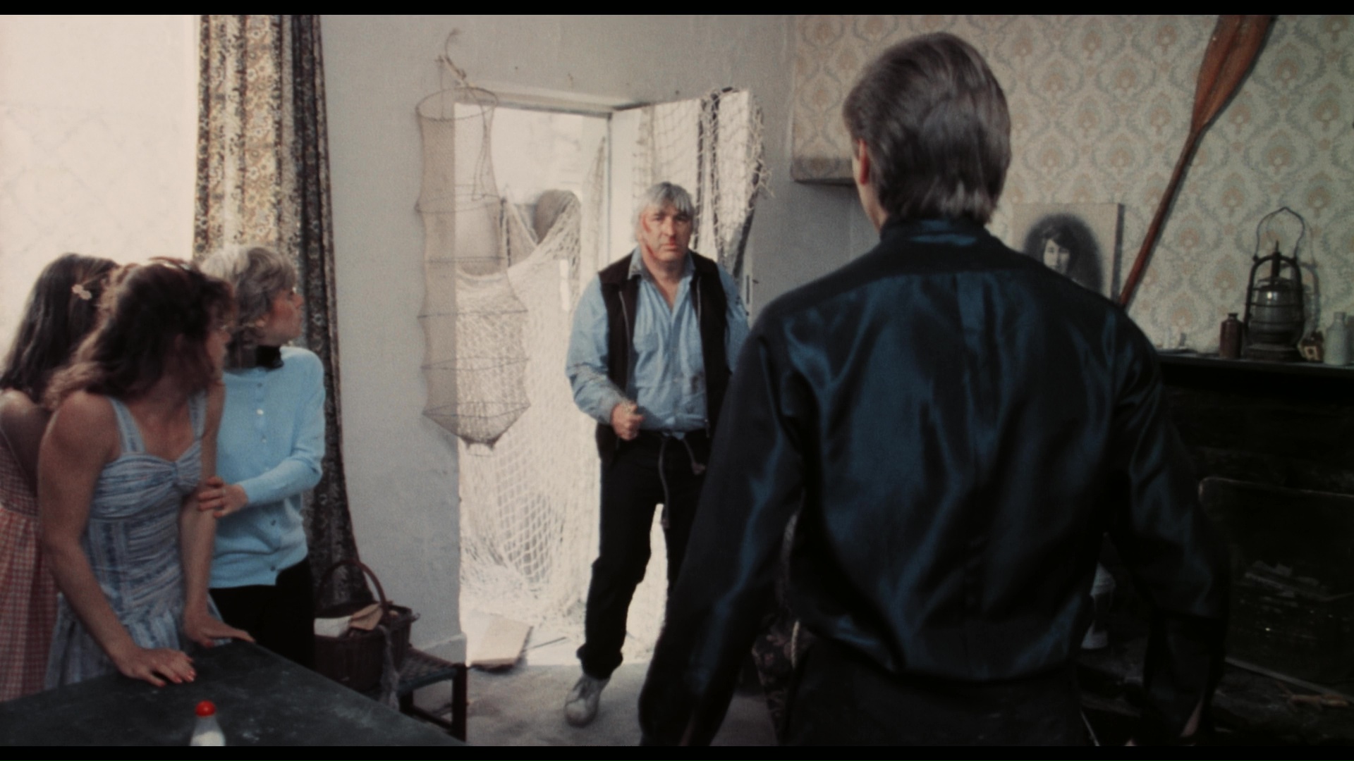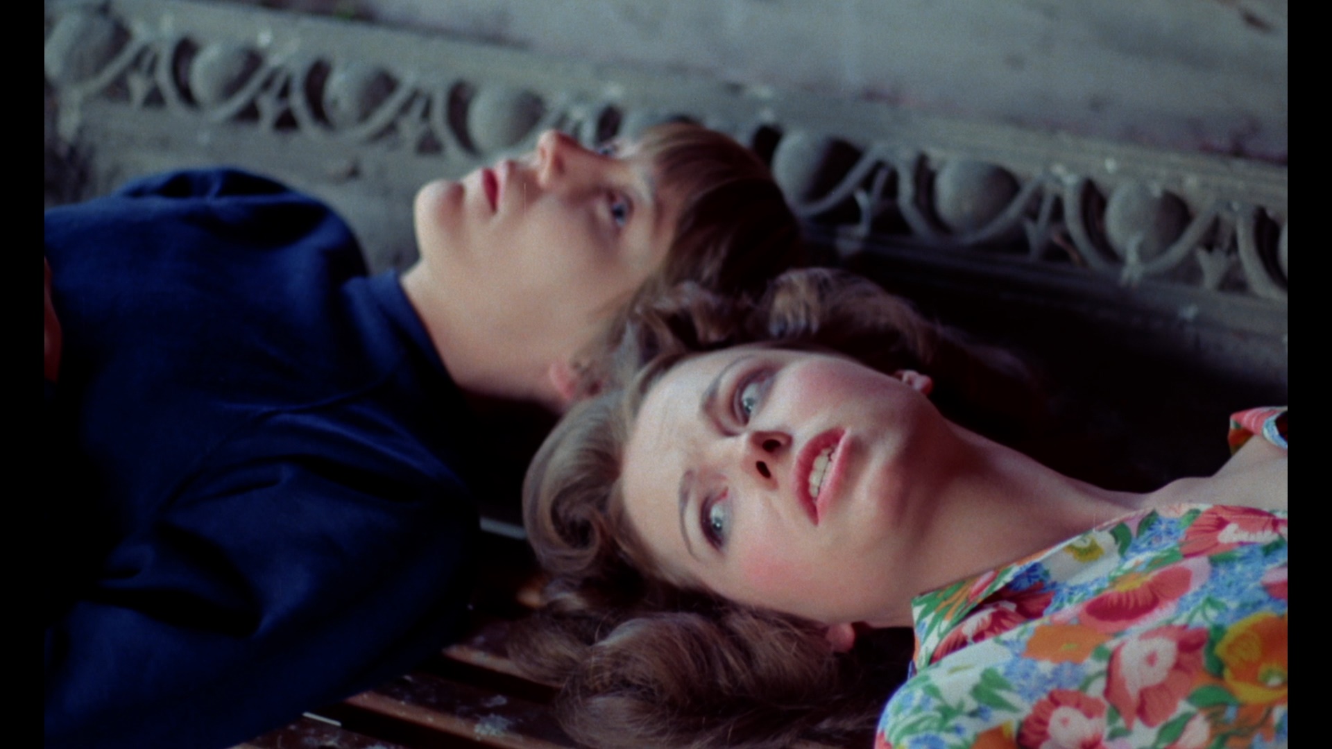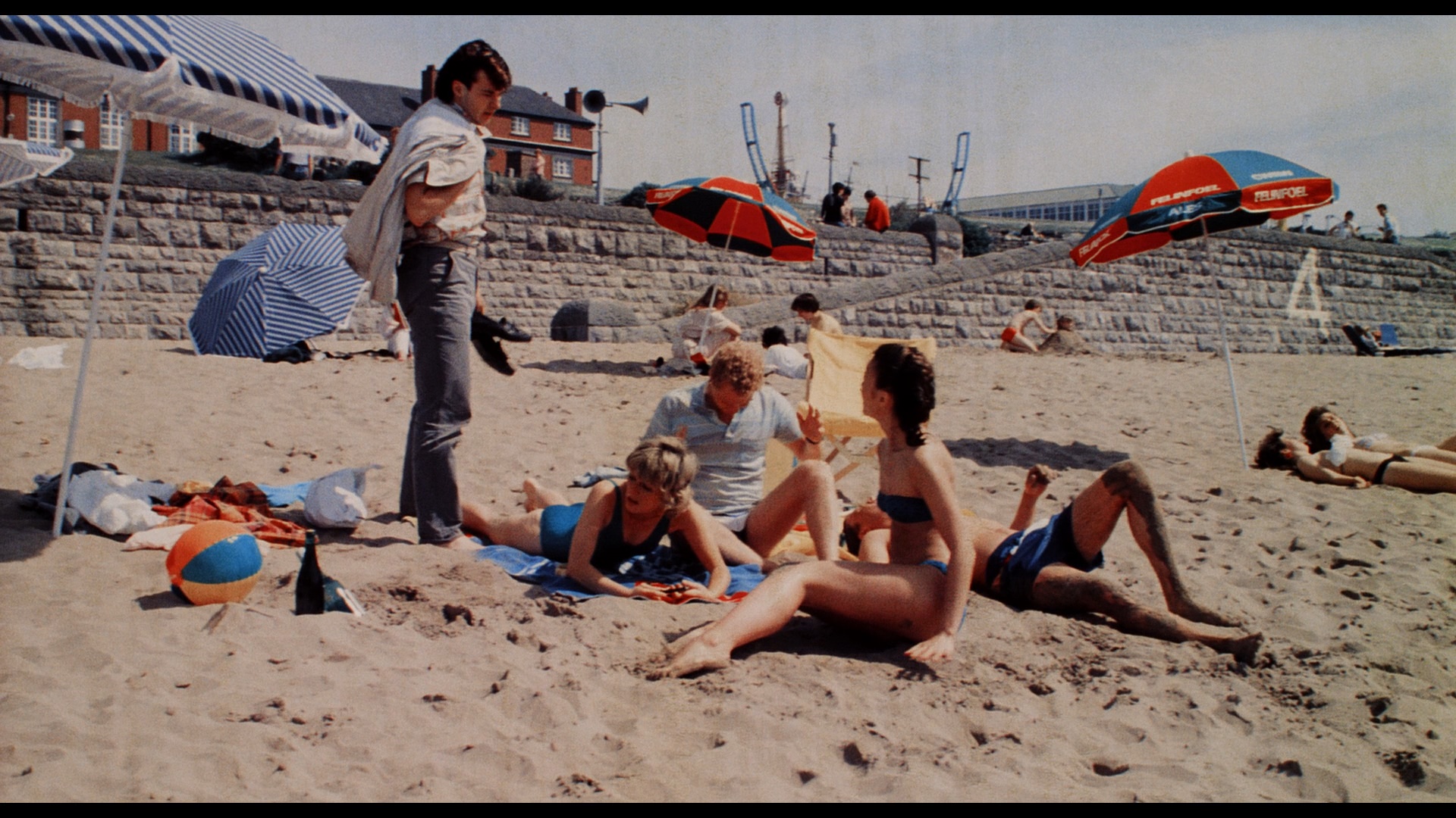 The Indicator release marks the film's second Blu-ray appearance and this time features no overlap at all in terms of extras apart from the trailer. The Warren-Rigby commentary comes back into circulation here for the first time in many years, and a new Warren video interview can be found in part one of the British Entertainment History Project (60m17s) with Warren by Martin Sheffield in 2018. Encompassing his work up through 1975, it's an extensive, very detailed account of Warren's life from childhood through his amateur films, his work up the industry ladder to becoming an editor and creator of commercials, his work on Her Private Hell, and his memories of many entertainment heavyweights from the era. The vintage "Keep on Running" (27m32s) is also brought back from the Anchor Bay release with Warren, Faulkner, Marcel, and a returning Pearce chatting about the making of the film, though the sound isn't the greatest. A little bit of raw production footage (2m21s) features Warren chatting over preparations for the bizarre cross-dressing dinner scene, and an image gallery features 55 images of stills and international theatrical and video art. That's not all though; Warren's early B&W short film, "The Bridge" (6m52s), is an interesting and ambitious little DIY war film set in 1942 France and made when he was 20 (with his dad starring), and it comes with optional Warren commentary and a bit of making-of footage (1m31s) with Warren returning for commentary duty. Then comes a batch of test footage for the unrealized film Carol (2m53s), again with Warren commentary, followed by another short, the Richard Lester-esque slapstick short "Drinkin' Time", complete with optional Warren video intro (3m22s). Finally comes "Whipper Snappers" (3m59s), with Warren chatting about the background and creation of a kid's toy TV commercial he made around the same time. Image-wise this one, like its companions in the Indicator set, is touted as a 2K restoration approved by Warren; it appears to be derived from the same scan but is darker, richer, and more intensely colorful, though (as with Terror below), it features a bit less image info on the sides. (ADDITION: The release has been slightly delayed to open the framing to match that on the U.S. editions. More details forthcoming.)