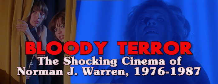 The first DVD release of Terror came from Rhino as part of their unfortunately titled Horrible Horrors series, which shuffled the film off in the most undignified manner as part of a multi-film set of Crown drive-in oddities. At least the open matte transfer looked pretty good. The subsequent UK release as part of Anchor Bay's Norman J. Warren Collection was far more problematic, using what appeared to be the same transfer as the Rhino version but overmatting it so severely to create a new anamorphic version that even the credits got lost off screen. It also featured particularly awful, wholly superfluous phony DTS and Dolby 5.1 remixes, but thankfully the mono track remained as an option as well. The BCI version, a double feature with The Devil's Men (a.k.a. Land of the Minotaur), easily bested them with a clean, colorful presentation with far roomier anamorphic framing. Note that the 16x9 presentation of both films is mentioned nowhere on the packaging, for some reason. No extras either. The 2012 reissue DVD from Scorpion pairs it up with The Devil's Men again (uncut this time), with both titles bookended by hosting sequences (and an intermission in between) featuring horror hostess Katarina Leigh Waters as part of her Katarina's Nightmare Theater line. Once again she's on her most comfortable turf here talking about British '70s horror (or in one case, British-Greek hybrid horror), and her Terrorenthusiasm makes for infectious viewing. The real extra sauce lies with Terror, which has the Anchor Bay UK extras ported over, dropping only a very Terrorlively Warren/McGillivray commentary track which will make completists hang onto that British cardboard coffin edition. The biggest bonus is easily "Bloody Good Fun" (41m8s) (or at least that's what it was called on the U.K. box, though the title card and U.S. packaging say otherwise), which features Warren, McGillivray, producer Les Young, exec producer Moira Young, and several of the cast members (including The House that Screamed's Maude, Courage, Aubrey, and Elaine-Ives Cameron) talking about the making of the film, from its undisguised Argento borrowings to the zero-budget effects work. You also get a couple of snippets of deleted footage (one of them another bit from the recurring sex comedy), the very similar American and French theatrical trailers, and bonus previews for more titles like Double Exposure, The Devil within Her, and Nothing but the Night.