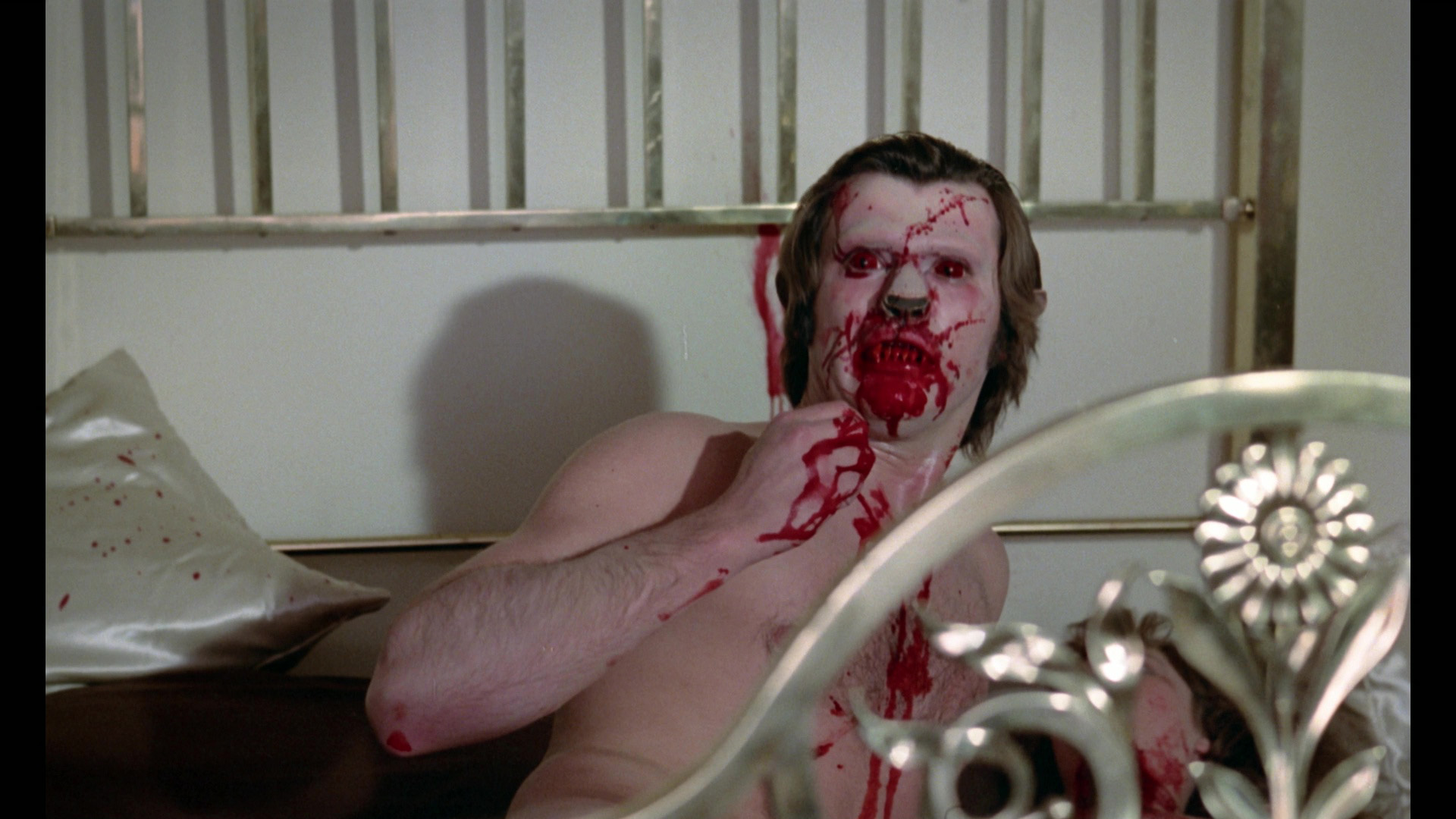 As for the Indicator release, it's taken from the same scan and, like Satan's Slave, looks the same in terms of framing and color timing. Nothing to complain about here at all. The audio commentary by Warren is a different one as he's joined this time by the BFI's Jo Botting, who prompts him along throughout and keeps things hopping more energetically than the U.S. track. while covering some of the same ground. You definitely need both editions if you're a fan. The trailer is also included, and then it's on to a slate of new additional extras starting with "Norman's Wisdom" (28m1s), the final part of the new interview session with a focus on his later, less covered work including documentaries, Spaced Out, and other odds and ends. Then actress Catherine Roman appears for "New Blood" (15m6s) to explain how a young American actress ended up making her screen debut in a British horror film (which she loved doing, complete with lots of "pink page" script revisions throughout), followed by "The Art of Blood" (14m28s) with screenwriter and set dresser Frazer Pearce chatting about how she first ended up working with Warren doing stills for Terror and ended up with more responsibilities leading up to this film, which required a lot of ideas that could still be pulled off with just a little bit of money. Then actor and stunt man Steve Emerson appears for "Fights, Camera, Action!" (10m22s) explaining how he became determined to get into the movies and ended up pulling multiple duties on this film and Terror. Yixi Sun, a Chinese filmmaker in London, turns up for the final featurette, "Working with Warren" (10m9s), explaining how they ended up collaborating on the FrightFest "Turn Off Your Bloody Phone" PSA (also included here in its entirety) for a pastiche of multiple horror tropes that also features a hammy role for David McGillivray, too. Finally the disc closes out with the trailer and a 20-image photo gallery. Easily one of the more lavish sets assembled for any genre filmmaker, this impressive collection will likely be the last word on this key figure in British horror for quite a long time to come.