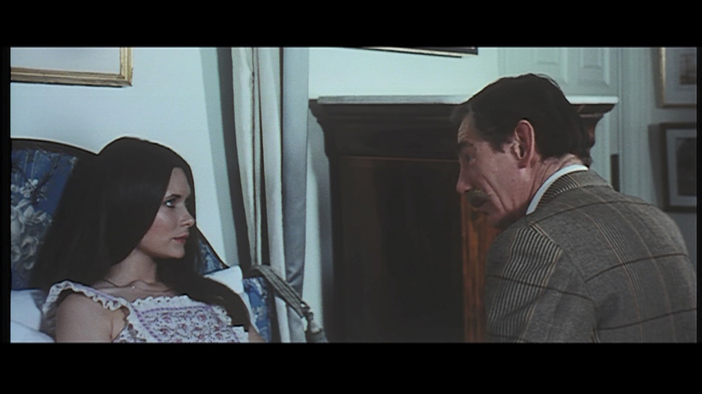 In 2019, Satan's Slave made its Blu-ray bow as a "Halfway to Black Friday" title from Vinegar Syndrome in a limited dual-format slipcase edition (with reversible cover art as well), featuring what's described as a new 2K scan from the 35mm camera negative. The film is completely uncut with the full scissor scene, and it looks darker, richer, and much more foreboding here than earlier transfers. Interestingly, this edition features a different, much more traditional Brent Walker logo at the beginning. The DTS-HD MA English mono audio is also quite robust and in very clean shape, with optional English SDH subtitles provided. The earlier Warren commentary is replaced here with a new one featuring him and Scott, who seem very relaxed as they take a sedate but pleasant stroll down memory lane chatting about the creation of the score, the shooting locations (with a family living in that house during filming), the commercial demands of the era, and plenty more. A second commentary with Samm Deighan and Kat Ellinger is very high in both enthusiasm and info (Ellinger cites this as her favorite British horror film) with plenty of thoughts on Warren's cinema (and its frequent critical misinterpretation and neglect), the gothic elements, the active nature of its female protagonist, and the various themes running through his work. The pertinent video extras from the earlier two special editions are carried over here -- "Creating Satan," "All You Need Is Blood" (now reconstructed in full HD and augmented with 32m42s of partially silent outtakes with music, including lots of dummy death splatter), "Devilish Music," and "Fragment" -- along with two theatrical trailers and the B&W deleted scenes with commentary.