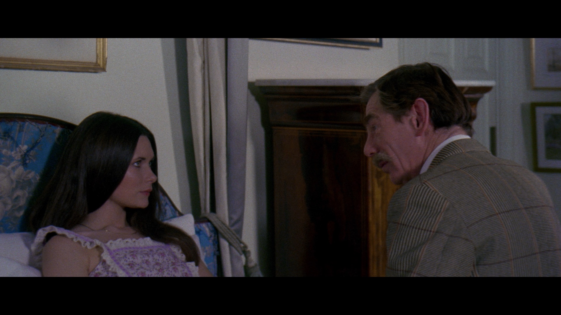The Indicator expands things even more by including both of the Warren commentaries together for the first time (with McGillivray and Scott), the preexisting featurettes ("All You Need Is Blood, " "Creating Satan," "Devilish Music"), the deleted scenes, and the "U" and "R"-rated U.K. trailers. However, here you get the option to watch the film in the strong "export" cut or Warren's sanctioned director's cut, which is complete but has the more restrained filming of the scissor scene. Image quality is comparable between the two (and indistinguishable from the transfer seen on the Vinegar Syndrome), but having both cuts also means you get both versions of the Brent Walker logos. As with the other films in the set, the English LPCM mono audio (with optional English subtitles) sounds great. A look at the two versions is provided in "Censoring Satan's Slave" (15m51s), which runs through the changes necessitated to the get the film onto British screens, and an extensive 57-image gallery features a hellish hodgepodge of promotional stills (some way, way more explicit than what you see in the film) and promotional art. There's also a new Warren video interview, "Before the Blood" (28m42s), about his path to becoming a director and his early work on some fairly obscure titles like Towers on Fire before he took to plunge to making films about "young people" and ended up rubbing shoulders with the likes of Julie Christie and Michael Caine.
