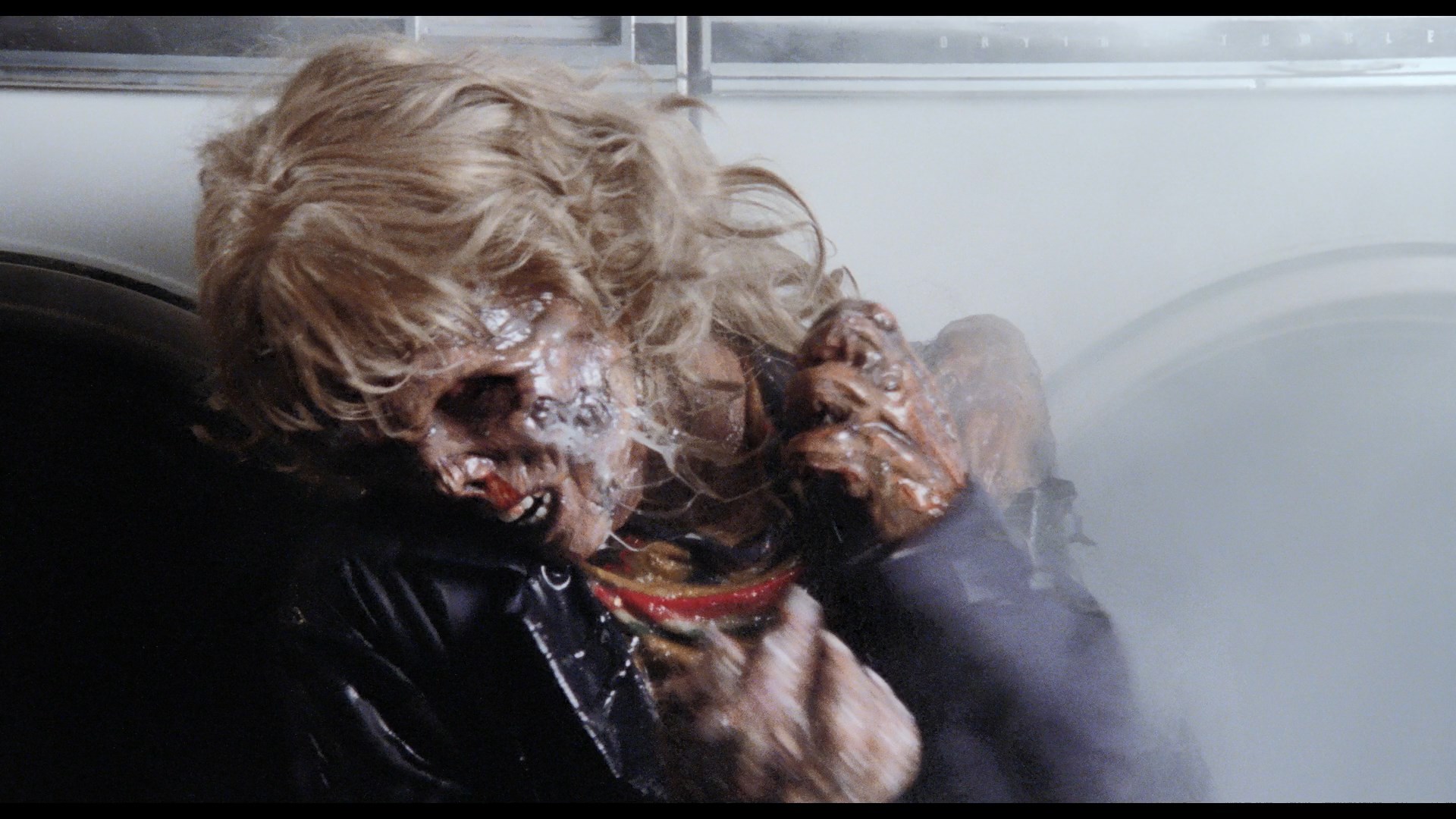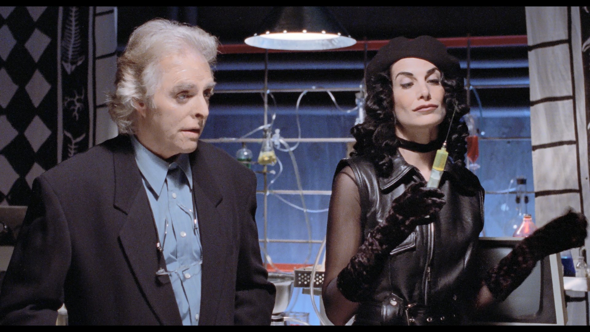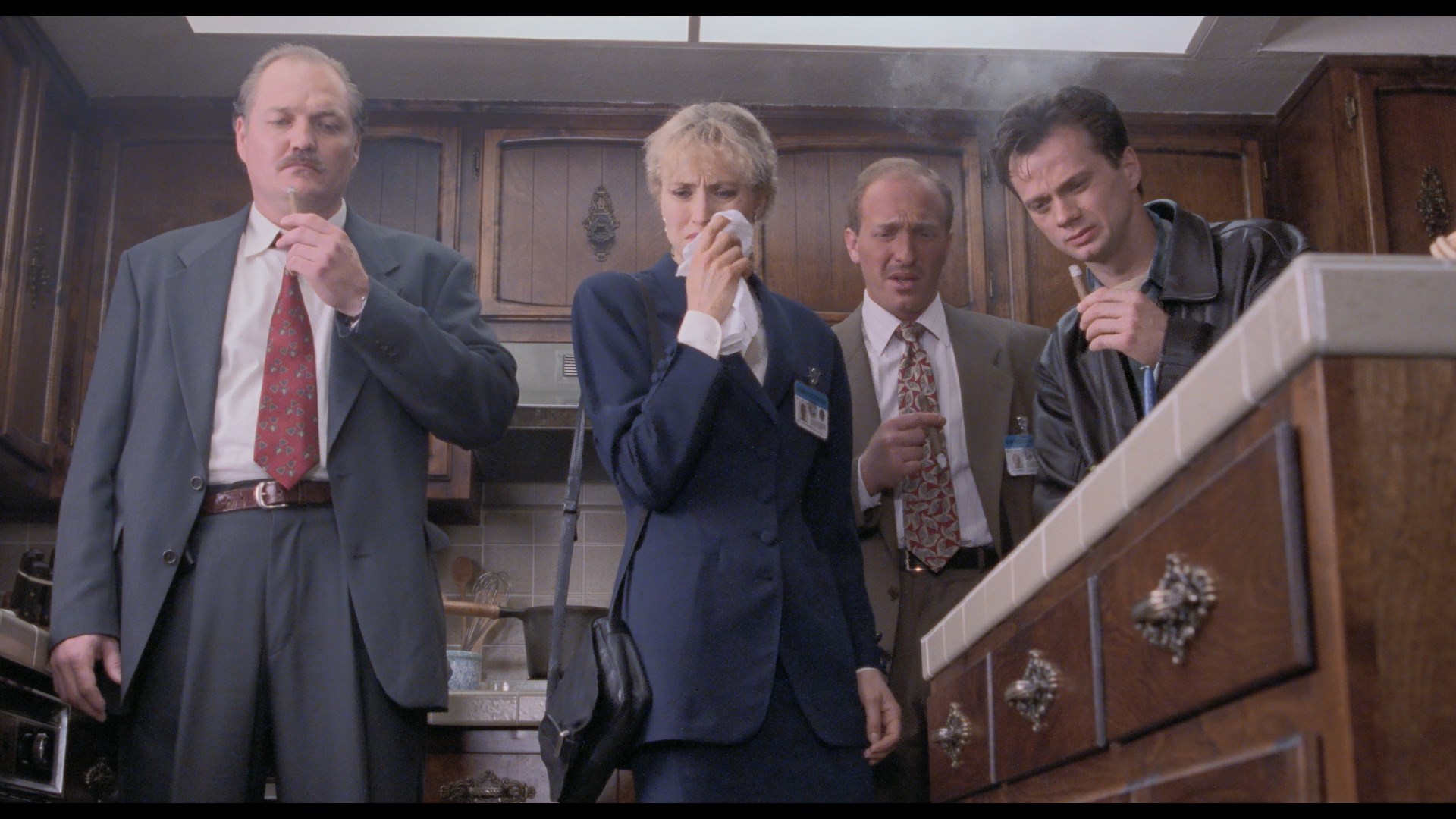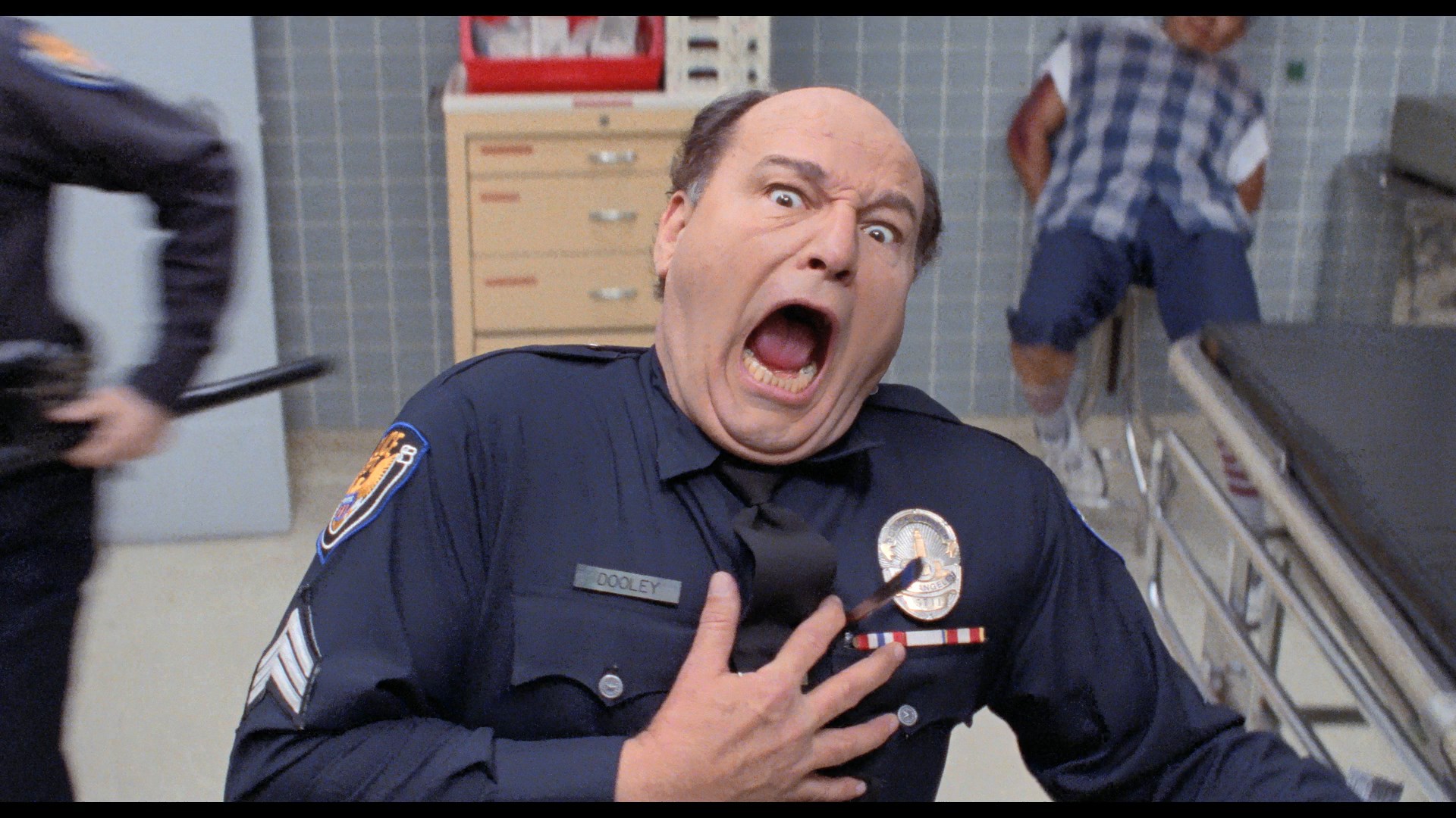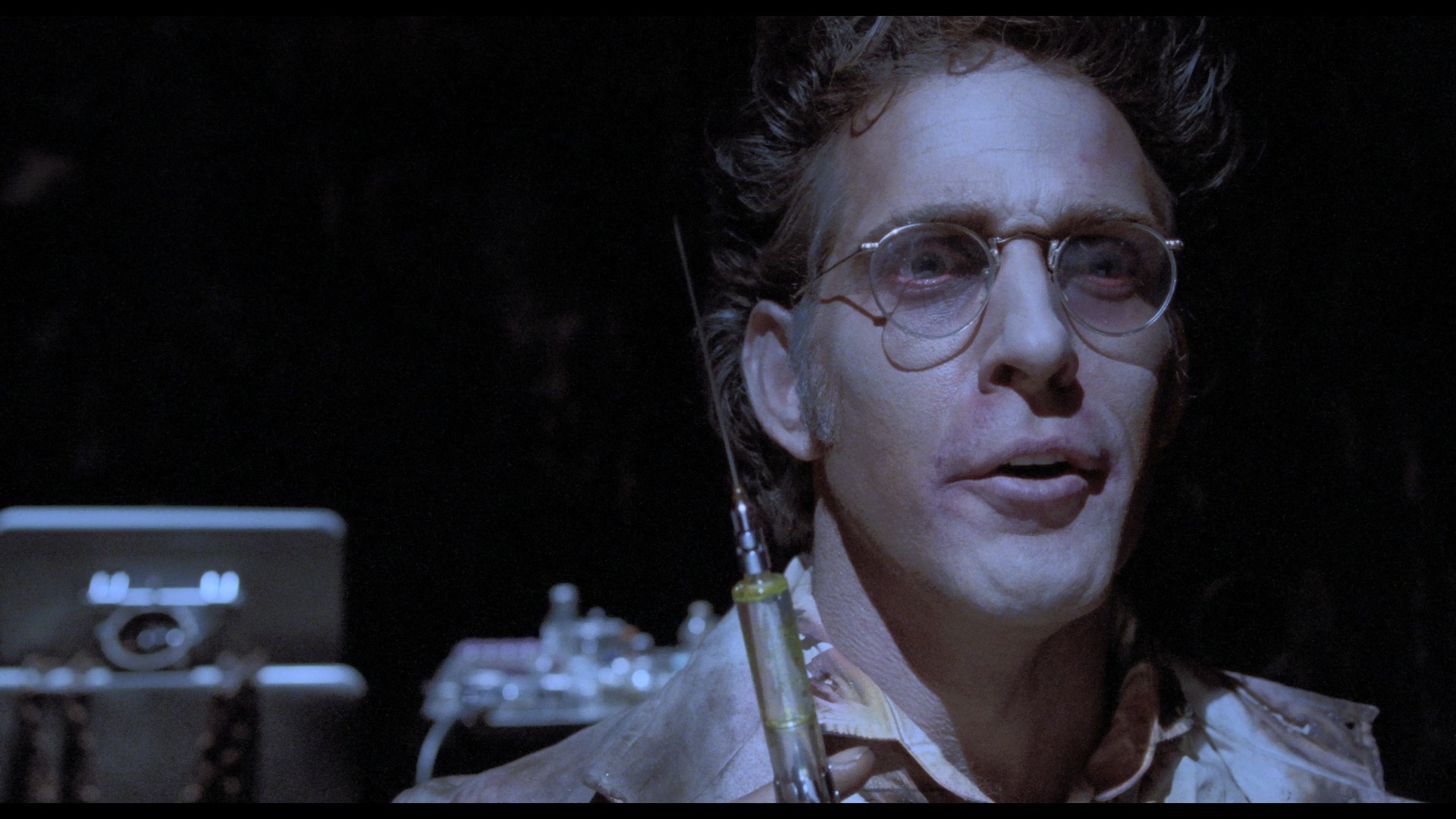 and they look absolutely gorgeous with the rich browns and reds in particular giving it a beautiful glow absent from other video transfers entirely. Both also feature very effective English DTS-HD MA 2.0 tracks replicating the Ultra Stereo mixes, which feature a surprising amount of aggressive channel separation with the music, scanner sound effects, police sirens, and so on getting a lot of rear channel activity. The 1080p Blu-ray presentations look great as well and about as good as the format will allow, but definitely opt for the UHDs as the native 4K scans really get to shine that way. Optional English SDH subtitles are also provided. A new audio commentary for the first Scanner Cop by the crew from the We Hate Movies podcast essentially riffs MST3K-style over the film with ad-libbed jokes that... well, if that's your thing, go for it. An audio commentary by Steve Barnett conversing with Brad Henderson for Scanner Cop II is a very worthwhile chat about the making of the film including the challenges of coming up with different visualizations of people getting drained to death via scanning, the narrative tweaks made to set the film apart (like having scanners be a more regular part of society), the cop action angle that appealed to him, the rationale behind not emphasizing any love interest, and the whole story behind