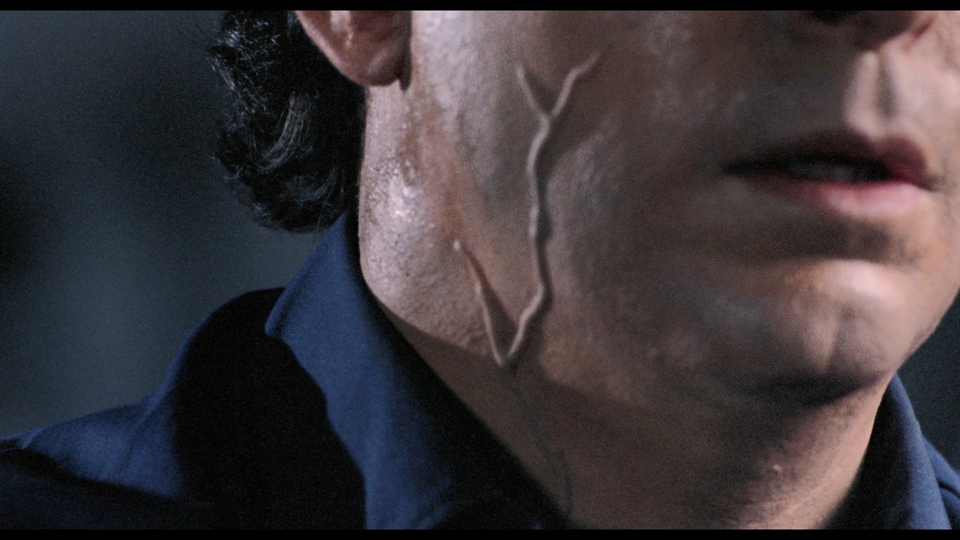 the more outre moments involving two people being zapped at once. Between the Blu-rays you get a solid two-part documentary about the films, Elijah Drenner's "Outside the Law: The Scanner Cop Revolution Part One" (22m9s) and "Part Two" (28m13s) with David, horror writer-director Simon Barrett (who's surprisingly down on the original film), Grove, Barnett, stunt coordinator Jeff Pruitt, Shepard (who says she based her look on Shakespear's Sister!), Haje, Kilpatrick, Bowers, Stephen Mendel, and special effects artists James Rohland, Tom Irvin, and Ted Haines covering tons of stories about both films from the hand-crafted makeup effects designed to rise to the challenge of the scripts to the dedication Quinn brought to his character, as well as the benefits of shooting almost entirely at night for the second film. Also included are a VHS-sourced promotional video (4m22s) for the first film hawking it to retail buyers (which will be a serious blast from the past for anyone who worked at a video store back in the mid-'90s, and hopefully someone actually tried the police siren gag they propose) and a standard theatrical trailer for the second.
