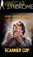 revolutionary special effects helped put Canadian writer-director David Cronenberg on the radar of Hollywood, opening the door to transition from his classic body horror tax shelter productions to working with major American stars. That film was also the first of Cronenberg's to spawn a sequel -- several, in fact, including the back-to-back Scanners II: The New Order and Scanners III: The Takeover, both in 1991. The common element of all these films was the presence of producer Pierre David, who was also on board for The Brood and Videodrome, and he decided to take the reins for what could best be described as an offshoot of the series: Scanner Cop, a direct-to-video feature that became a hot renter for Republic on VHS back in 1994. Starting over with new characters while retaining some plot elements, the film is a wild showcase for practical effects that add a few new wrinkles to the obligatory highlights like pulsing veins and exploding craniums. That film's star, the late Daniel Quinn, stuck around for an immediate sequel, Scanner Cop 2: The Showdown, which was handed over to Mindwarp director Steve Barnett. Even more elaborate than its predecessor, the follow-up film was also a steady favorite at the time, though both eventually became more difficult to find and are now ripe for reappraisal.