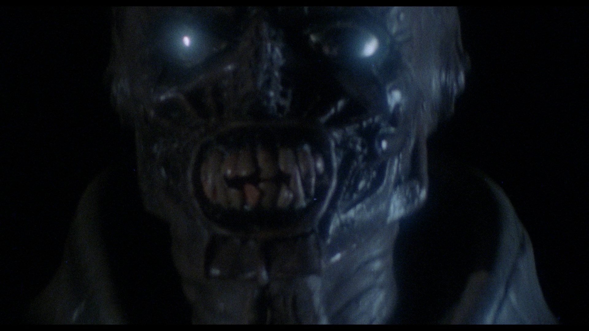 As with Creature, you get a choice here between the familiar theatrical version and a director's cut; however, in this case the latter (housed by itself on disc two) was created much later including revised editing and some significant tweaking with newly rendered credits and an opening text crawl that fixes a pretty big spelling flub. A preface to the director's cut calls it "the most faithful to my original intention" including color grading tweaks, 3 minutes' worth of pacing cuts, and sound effects additions. The overall appearance of the director's cut is much colder and bluer, a far cry from how we've seen it in the past; try both and see which you prefer, but to these eyes the theatrical is the winner.