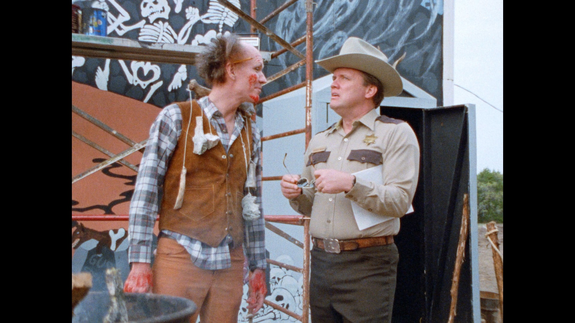 '80s and '90s regional horror indies resurrected from the dark corners of people's basements continues with this Texas-shot Halloween bash, which never found a legit distributor back in the day but now has some curiosity value thanks to leading man John Hawkes. A future Oscar nominee for Winter's Bone and featured player on Deadwood, he already had a solid roster of Hollywood character roles under his belt by the time this one rolled around but never really had a chance in the limelight. He's still quite green here with an odd performance that doesn't quite click all the time, but it's fascinating to see him in what amounts to a love letter to local haunted houses years before that became the focus of films like The Houses October Built and Hell House LLC.