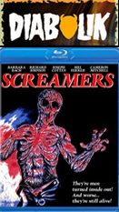 to be the ad campaign used to lure moviegoers in to see Screamers, a mysterious early '80s release that seemed to pop out of nowhere with a baffling all-star cast and a brilliant tagline: "Be warned: You will actually see a man turned inside-out!" As it turned out, no one - male or otherwise - was seen turned inside out in the actual film, nor was any footage from its raucous trailer (featuring a screaming woman, sci-fi flashing displays, and goop-covered beasts) anywhere to be found. When audiences complained, the posters were modified and a handful of prints were supposedly augmented very hastily with some of that "inside out" trailer footage.
