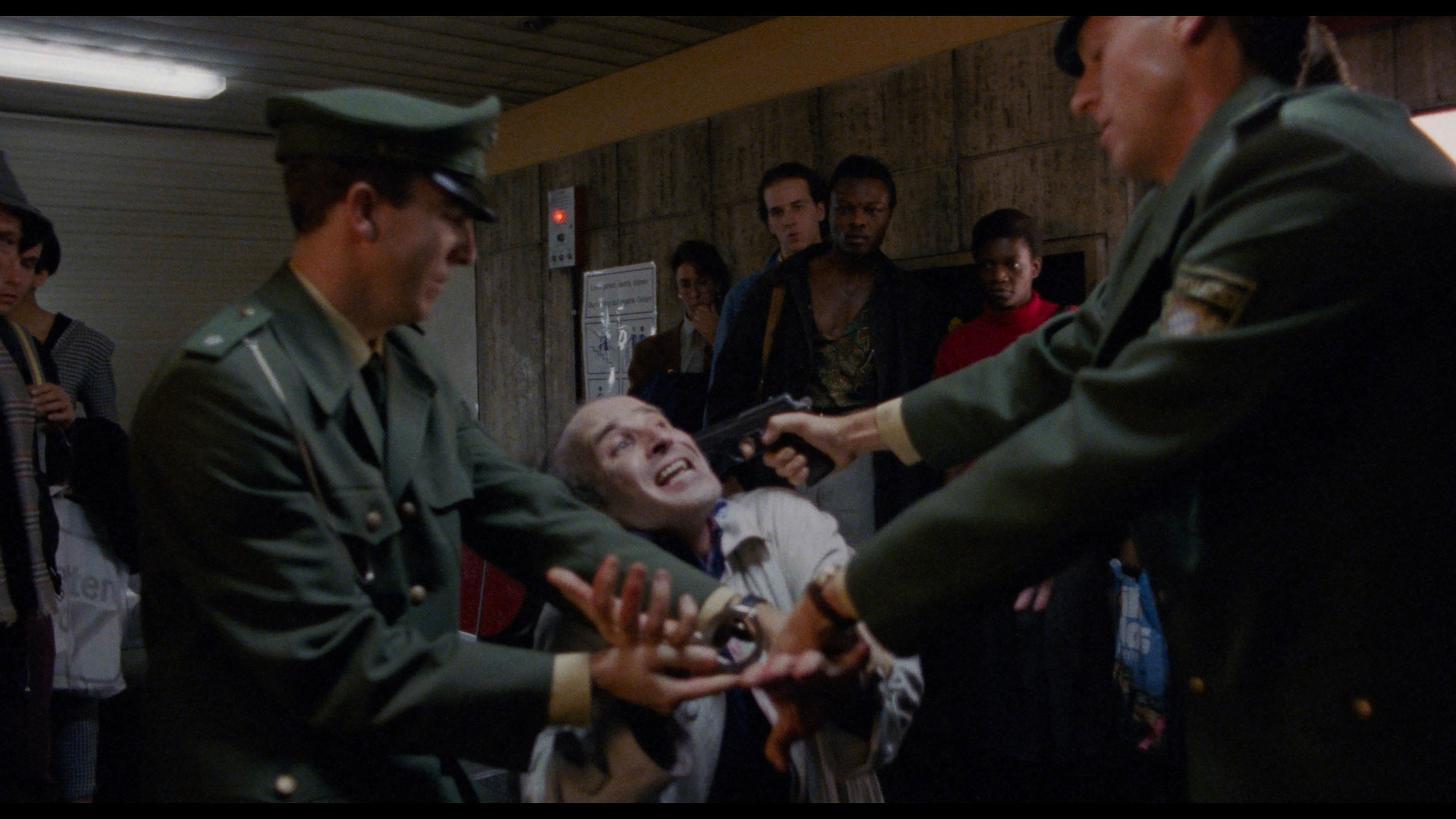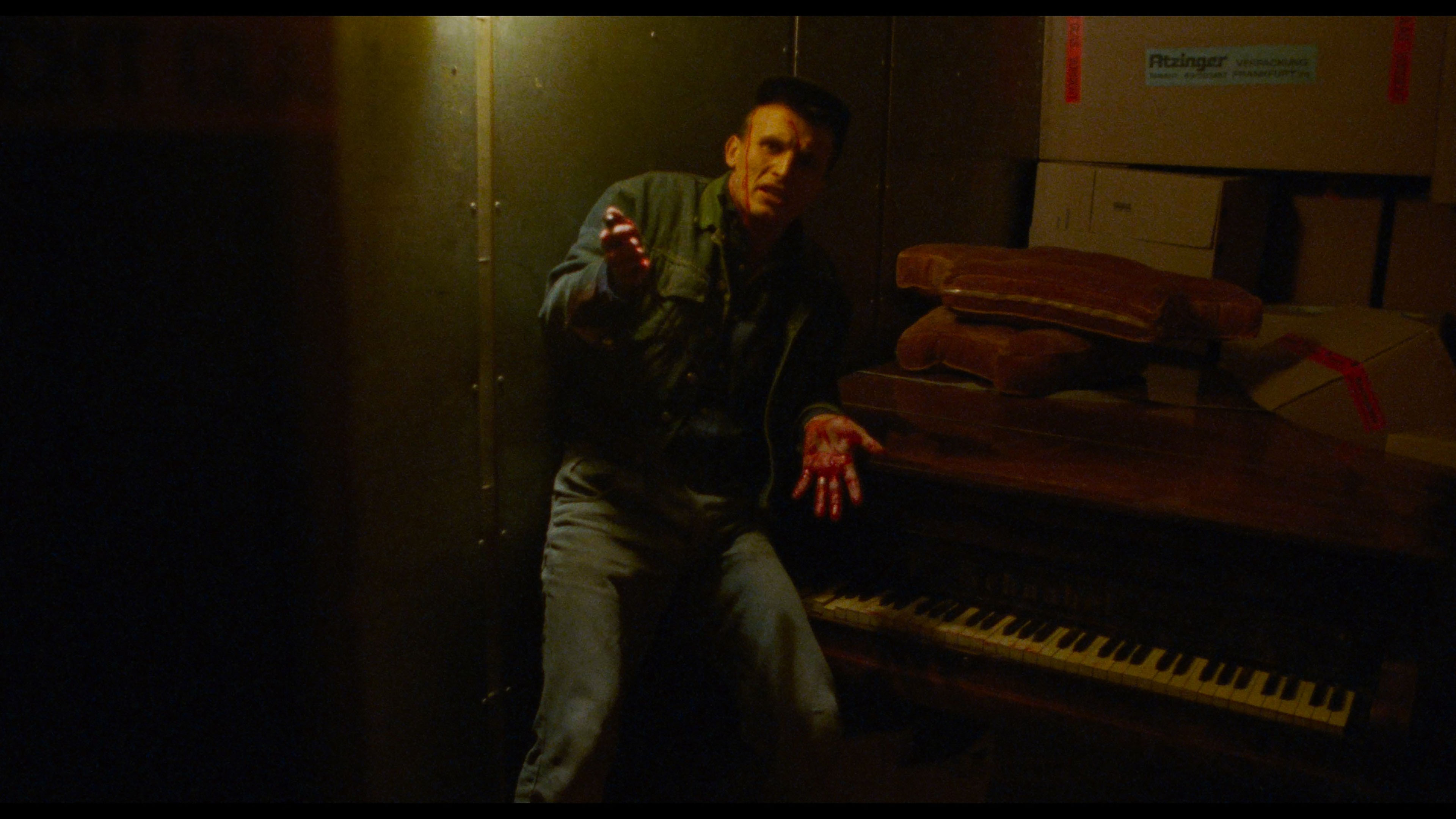 A pricier European option is the German release, as a 2016 deluxe mediabook edition or a 2018 standard Blu-ray / DVD set, which features a significantly stronger transfer with deep blacks and The Sectmore convincing detail. Audio options are DTS-HD MA German and Italian mono with some stereo at the end grafted off the soundtrack CD, or English mono with optional German subtitles, while the main disc also has a German credit sequence and Italian and German trailers. The mediabook released in 2016 also has a bonus DVD featuring a bevy of cast and crew interviews with German or Italian options but no English ones; more on that below.