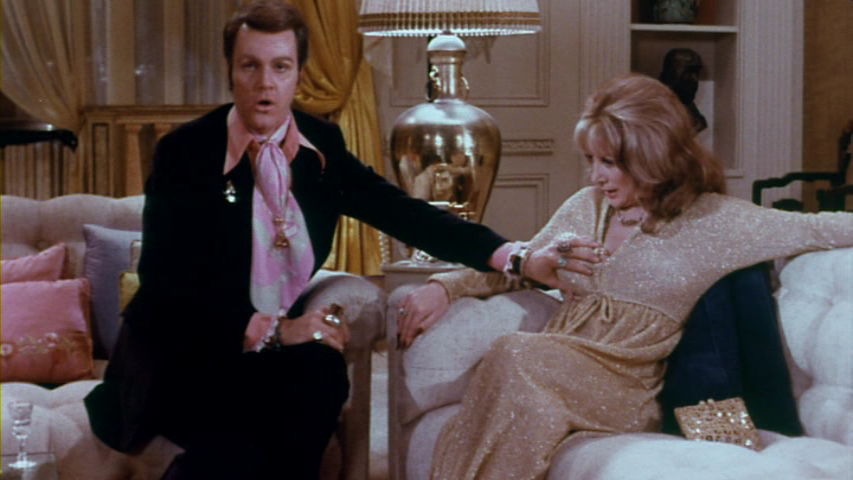 Fortunately if you're a fan of '70s pop culture, there's enough going on here to justify a viewing. The parade of sitcom-style sets, gaudy clothes, corny gags, and TV-ready actors are juggled with a minimum of fuss by director Charles Martin, who similarly sat back and everything unfold with minimal strain in If He Hollers, Let Him Go. Like that film, this was released theatrically by Cinerama and issued on VHS in the '80s before dropping off the map entirely for decades, only to resurface as a direct distribution title from Code Red. The source elements are generally in fine shape, though colors have drifted to the pinkish side; it's still significantly more crisp and watchable (not to mention better framed) than the tape and should make fans happy in the upgrade department. The mono audio is fine given the limited nature of the source, which consists of dialogue and some outrageously kitschy music by Stu Phillips in between his more famous gigs on Beyond the Valley of the Dolls and Battlestar Galactica. No extras, though you do get a highly un-p.c. theater promo at the beginning along with a vintage swamp meet ad. Whip up some fondue and enjoy.