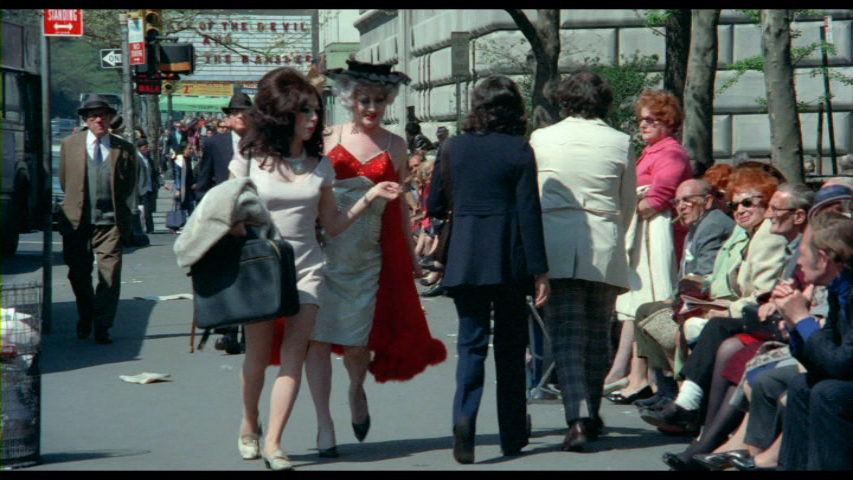 Then we take a trip over to Wendy's Palace, an earlier and far more obscure title from director Horulu offering a glimpse at hooking circa 1970, when all the girls in New York City seem to strut their stuff in front of billboards for Hello, Dolly! Our title character (Poey) has been forced into the world's oldest profession to make a few bucks, but she doesn't have a pimp. That makes her vulnerable to a vice cop named Vince (Mills) who samples her wares before sending her off to the slammer, where (off screen) she learns about the joys of sapphic love. Once out she's comfortable for a little while when a relative's death leaves her some cash, but before long she's bunking up