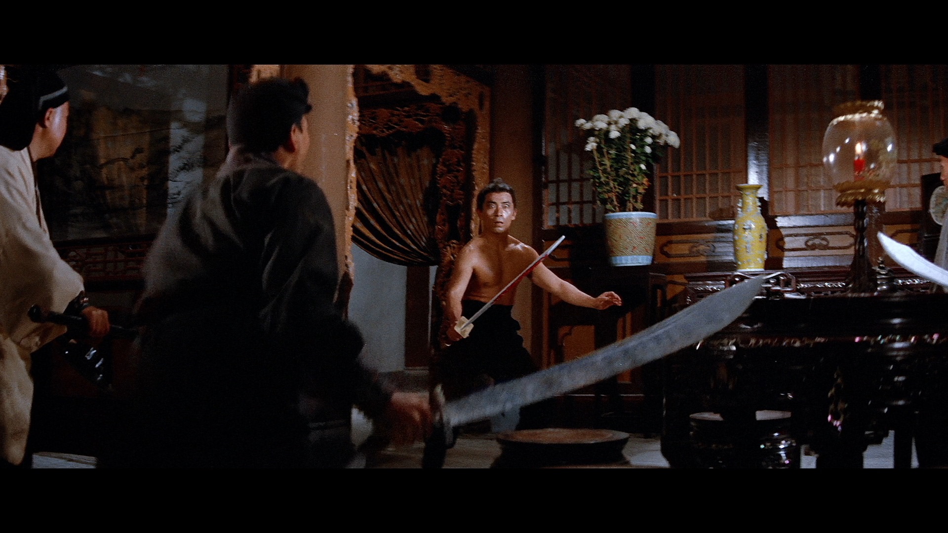 be familiar throughout the '70s and onward. Thanks to its popularity, this film has had a robust home video history including a Hong Kong English-subtitled DVD and a 2007 Dragon Dynasty DVD in the U.S., the latter featuring Mandarin and English audio options with English subtitles, an audio commentary by David Chute and Andy Klein, "The Master: Chang Cheh" featurette (17m30s), an interview with Wang Yu (10m56s), an interview with the two commentators (8m9s), and the original and home video trailers. A 2018 U.K. Blu-ray from 88 Films featured the Mandarin and English DTS-HD MA 2.0 tracks with typo-heavy subtitles, though for some reason the English dub is only in the left channel and sounds awful. Extras include an audio commentary by the notorious Bey Logan and a 17m25s appraisal of the film by David West. The Arrow Blu-ray feature a new 4K restoration by Celestial Pictures and L'Immagine Ritrovata that improves significantly over prior releases, with more impressive and accurate color (real reds here instead of glowing orange) and a lot more image info in the frame. The LPCM 1.0 Mandarin and English tracks both sound excellent here (the best so far) with English-translated or English SDH subtitles available. This time David West does the commentary honors, expanding nicely on his prior interview piece with a thorough breakdown of the film's production and its importance in the Shaw Brothers story. On the video side things kick off with a new Tony Rayns appreciation (38m9s) exploring its impact on both the box office and cinematic culture, while the cast is represented by three great interviews from the Frédéric Ambroisine archive with Wang Yu in "One-Armed Superstar" (41m15s) from 2001, Chiao Chiao in "A Shaw Career" (16m32s) from 2005, and Ku Fent (18m47s) on the film and its sequel. Film historian Sam Ho offers his own take on the film and its director in a 2003 appraisal (22m21s) covering the literary influence on the central conceit and possible debts to Zatoichi, the romanticism flowing through Chang Cheh's films, the use of mutilation in swordplay films, and the film's critique of how gender was handled in local cinematic output. Then you get a take from Daniel Lee (10m46s), who directed the remake What Price Survival, recorded in 2004, and the Brandon Bentley video essay "One