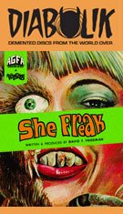 1960s and '70s including some of the best "roughies" ever made and a number of collaborations with the legendary Herschell Gordon Lewis. However, the Alabama-born maestro of marketing actually grew up on the Southern carnival circuit, an experience that helped him develop an impeccable huckster instinct that helped keep his films busy on the exploitation circuit for years after most of their peers had reached their sell-by date. Nowhere did Friedman's two passions collide more extravagantly than She Freak, a shameless retooling of Tod Browning's horror classic Freaks shot in vivid color at a real carnival in Bakersfield, California. This was the second of several films Friedman produced with director Byron Mabe (following the astonishing A Smell of Honey, a Swallow of Brine), who started off as an actor in The Defilers and would go to helm favorites like The Lustful Turk, Space Thing, The Bushwhacker, and The Acid Eaters. Though often classified as a sexploitation film, She Freak really isn't apart from a very tame burlesque performance and some PG-rated carnal shenanigans. In fact, apart from the last five minutes (whose stinger is spoiled on all of the existing promotional art), it barely even qualifies as a horror film. What you actually get is a wonderfully overripe snapshot of carny life held together with a sordid noir-style plot