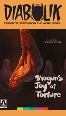on Blu-ray from Arrow Video in the U.S. and U.K. Image quality here is comparable to the earlier Ishii releases, with accurate and often earthy color schemes and solid detail throughout without any excessive cleaning up to make it look more clean or modern. The 1.0 LPCM Japanese mono audio is also true to the source and perfectly fine, with optional English subtitles. A new audio commentary by the reliable Japanese film specialist Tom Mes does a good job of balancing info about Japanese genre cinema, Toei, Ishii's cinematic career, the era of Japanese history evoked in the film, the evolution of portrayals of nudity and violence starting with early examples like Gate of Hell, and much more. In the new "Teruo Ishii: Erotic-Grotesque Maestro" (13m23s), writer Patrick Macias covers Ishii's wild 1968 output, his cult reputation in Japan, the various genres and relentless work pace he employed, the real-life basis for many of the extreme practices seen in this film, and the status of Toei at the time as they tried to compete with the eroding effects of television. Then "Bind, Torture, Thrill" (25m16s) with writer Jasper Sharp takes a broader look at the torture theme running through Japanese cinema, its historical implications, the rising audience demands for boundary-pushing material, and his first exposure to this film via DVD. The Japanese trailer is also included (with English subtitles) along with a gallery of stills and poster art, while the first pressing comes with a liner notes booklet by Mark Schilling. Reviewed on February 16, 2021