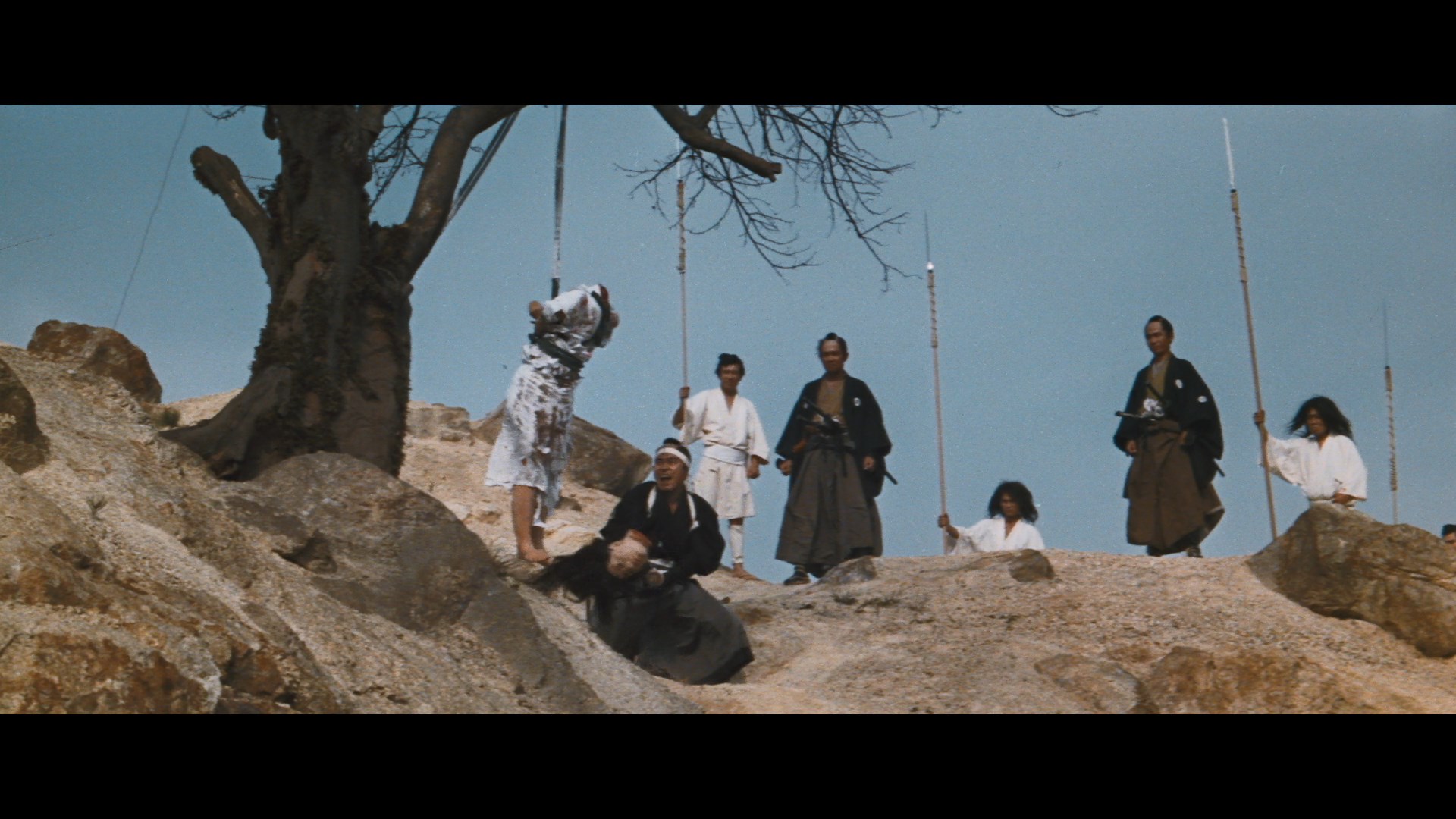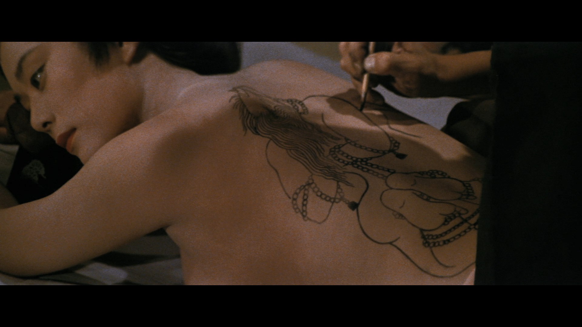 of nuns who indulge in head shaving, leech baths, and uncomfortable applications of chili pepper, all driven by their lustful thoughts thanks to an adjacent order of monks. Finally, tattoo artist Horichô (The Living Skeleton's Hoike) finds his latest creation depicting a woman in agony decried by a nobleman (The Street Fighter's Watanabe) for its lack of realism. To learn how it's really done, Horichô is invited to watch the tribulations of a group of Western missionary women undergoing severe interrogation, with an ironic twist. Unlike most of the other Edo torture films, this one is much more steady about the way it ramps up its taboo-pushing material after that short, insane curtain raiser. The first story deals with its incestuous in a surprisingly tasteful fashion (relatively speaking, as the dialogue is more touchy than anything we actually see) and the nun narrative relying more on conceptual perversity than lingering nudity. (That leech bath might be the most upsetting thing in the film for some viewers.) Of course, it's with the final tale that Ishii and company really pull out all the stops, indulging in a crazed finale that feels like a true descent into hell. The film is also extremely well crafted with beautiful cinematography and evocative music giving it a classy sheen that makes the big shock moments land even harder, which must have gotten quite an audience reaction when this first played in theaters.