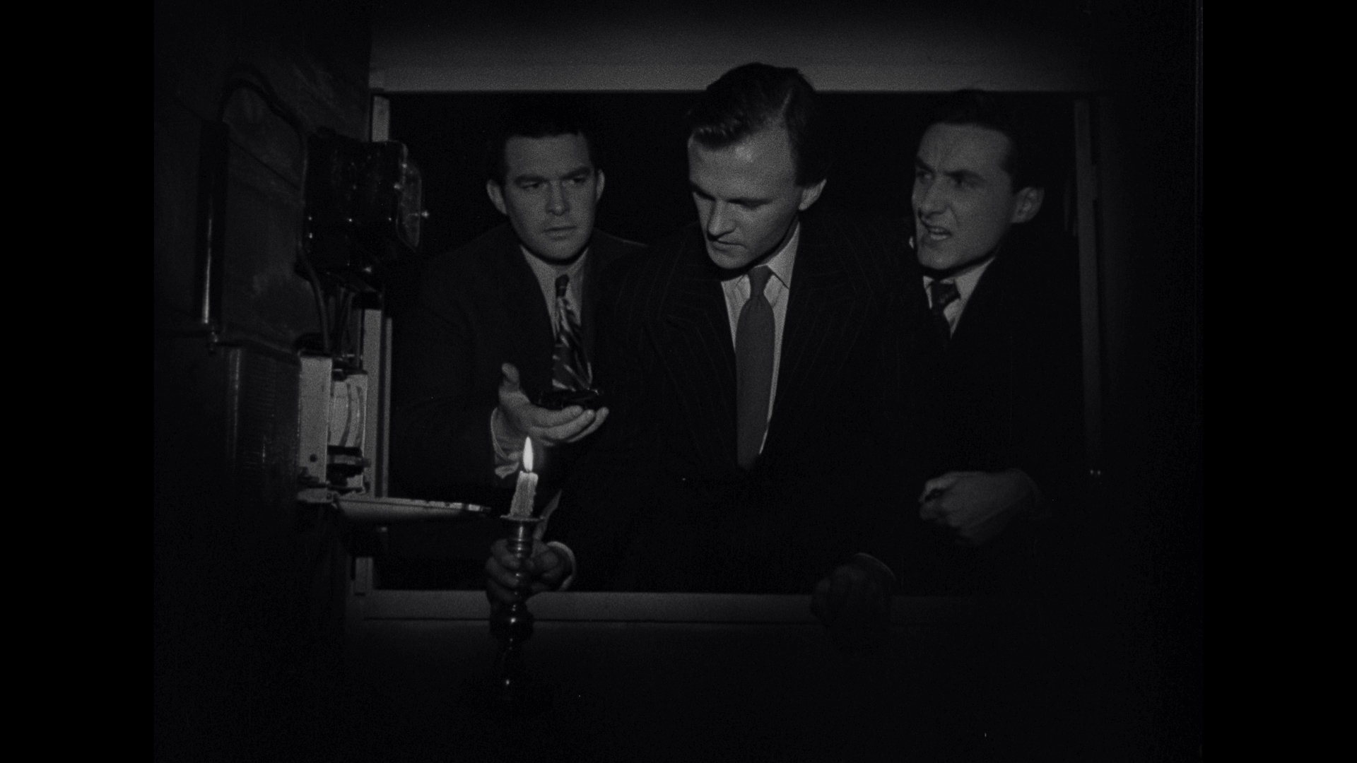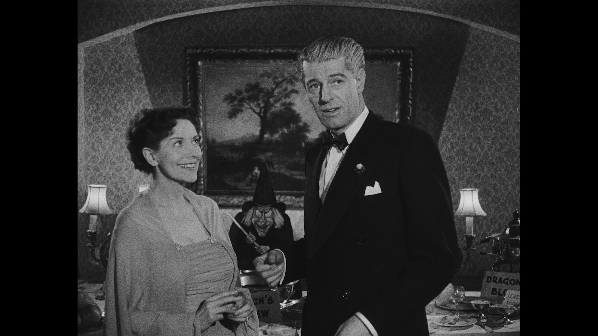 in 2020 and the second in 2021), the four long-awaited installment arrived in 2025 with a fresh slate of offerings ranging from quaint monochrome quickies to an ambitious widescreen mini-epic. In fact, the set kicks off with one of its heaviest hitters, the once frustratingly rare 1948 cult favorite The Fatal Night (49m35s). One of multiple adaptations of the spooky 1925 Michael Arlen short story "The Gentleman from America" (later remade in more compact form as an episode under its original title for Alfred Hitchcock Presents), this almost feature-length treat is a rare foray into horror for Italian-born British filmmaker Mario Zampi who would soon become one of the country's finest golden age comedy directors. The strangely structured story centers around the wager accepted by American visitor Puce (Lester Ferguson) with two Brits, Cyril (Leslie Armstrong) and Tony (an unrecognizably young Patrick Macnee), to win a tidy sum of money if he stays in a haunted house overnight. Armed with a candle and a revolver, he settles in and reads a blood-freezing tale about the ill-fated sisters who once lived in the house, a scenario that seems to be threatening his overnight stay. Complete with an embellished dream sequence and a memorable bedside attack, this is a stylish, atmospheric film that packs a fairly strong punch for '40s horror that only a few of its British peers (most notably Dead of Night) managed to surpass. What flaws it has are baked into the source material, namely a final act that relies on multiple extreme contrivances and lets its most loathsome character off without even a warning. Featuring a Columbia logo at the beginning, the element here (a duplicate positive) is in good shape and, as with almost all the other films here, features a solid LPCM 1.0 English mono track with optional