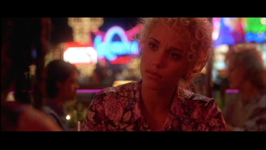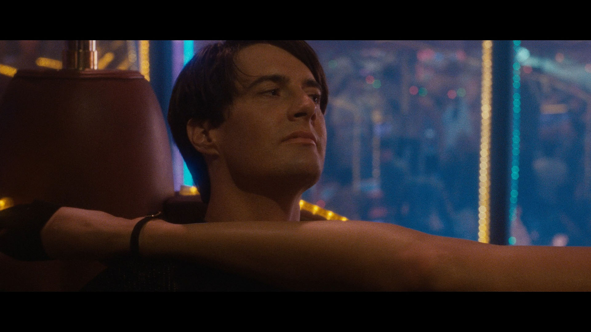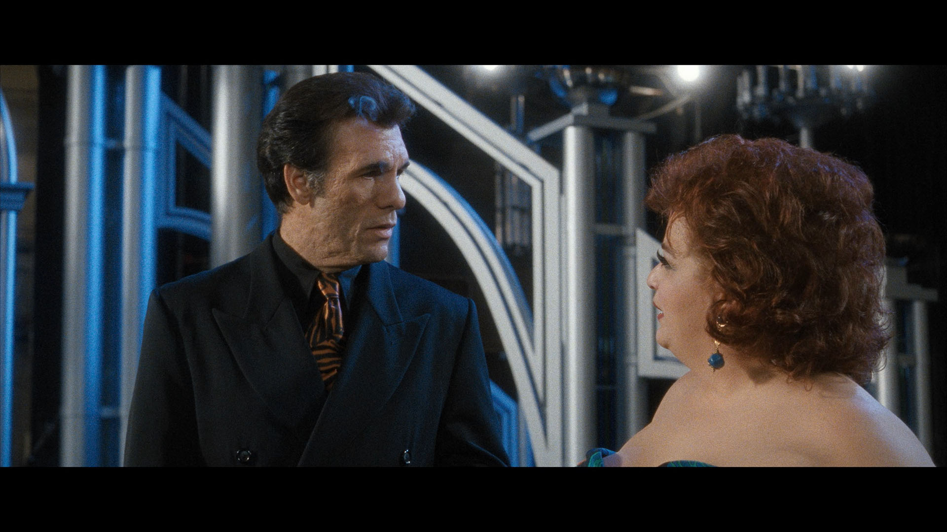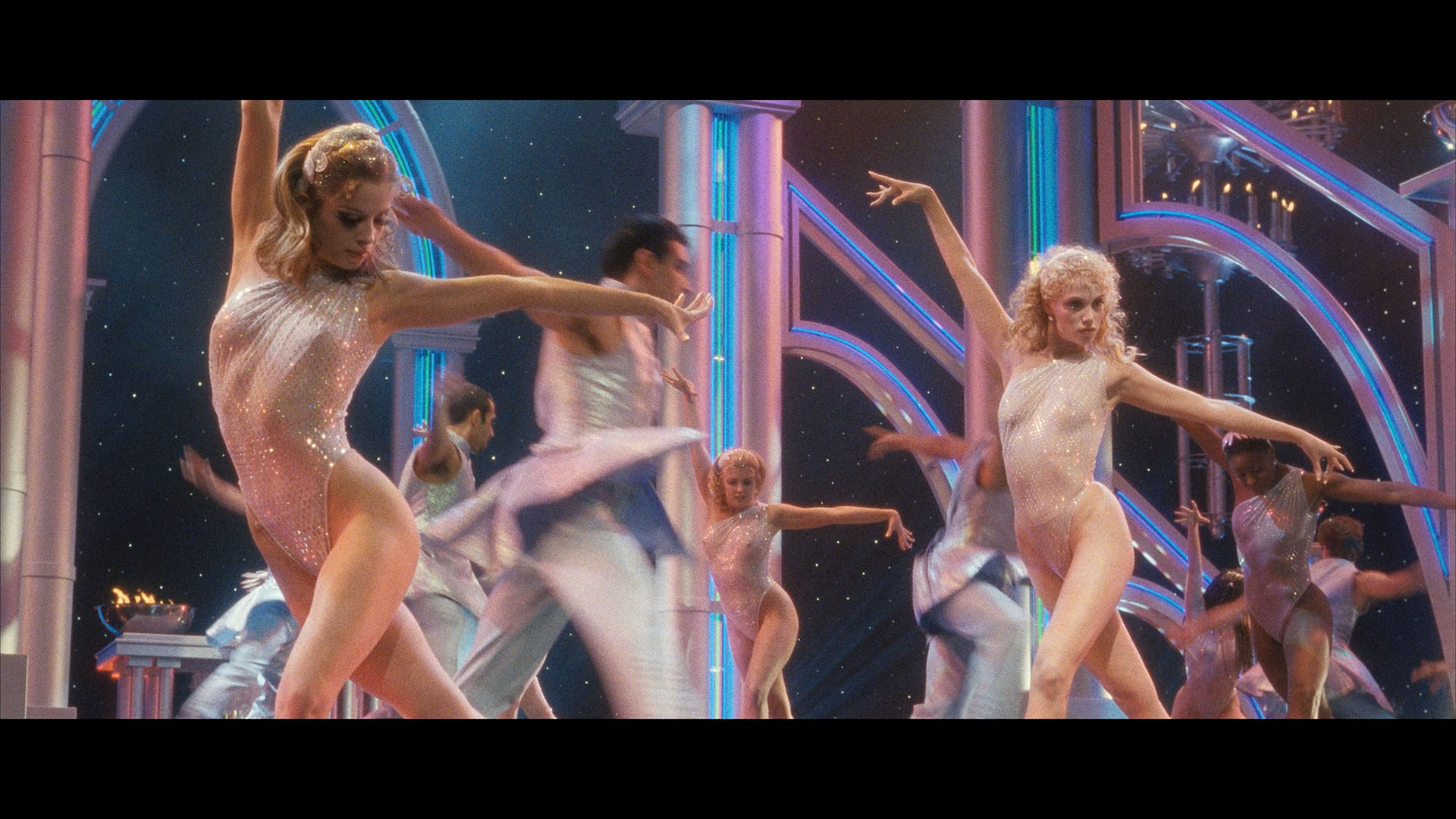 and look accurate throughout, finally freed from that weird gold saturation that marred the European releases. The film also features the usual preexisting commentary track, plus 5.1 and 2.0 DTS-HD MA options (both sound great with plenty of surround activity) and optional English SDH subtitles. The UHD doesn't have video supplements as usual to allow the film itself to max out the bit rate, while the first Blu-ray has the theatrical trailer. Ported over from the earlier releases are the Verhoeven "More Vegas Than Vegas" interview, "A Showgirl's Diary," the lap dance tutorial, and a behind-the-scenes promotional featurette (4m55s). The new extras kick off with "You Gotta Gamble if You’re Gonna Win" (14m25s), a great new interview with Eszterhas about his first meeting with Verhoeven, the project's ties to Costa-Gavras(!) and a potential remake of All About Eve, the development of the script and extensive research with real dancers, the origin of the name Nomi, and the issues with making an NC-17 film. "All that Glitters: Filming Showgirls" (11m55s) cuts the earlier interview with Vacano and a new one with performance lighting designer Peter Morse to cover the process of creating the film's look, the lighting of the dancers' bodies, and the flexibility needed to give it the right hyper-real aesthetic. In "The Rhythm of Chaos" (16m11s), co-editors Mark Helfrich and Mark Goldblatt chat separately about the process of corralling the footage in post-production with Verhoeven and having a blast crafting a button-pushing film they felt was misunderstood at the time. In "Born to Dance" (19m), Riffel shares her own story about her lifelong love of dance, the process of doing auditions, her recording career, the process of playing Penny, and her embracing of the film's legacy. Finally in "Free Lap Dance with Every Large Popcorn: The Cult of Showgirls" (13m12s), Midnight Mass Podcast hosts Peaches Christ and Michael Varrati examine the film's hostile initial reception and its rise to cultdom via an audience who got onto its delirious wavelength. The package also comes with a 40-page book featuring essays by Elizabeth Purchell, Abbey Bender and Adam Nayman.