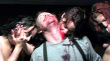 On the more recent front, Happy Cloud Pictures, the guys who gave you such films as Weregrrl and Severe Injuries, go a bit more ambitious and upscale with their recent outing, A Feast of Flesh (announced in earlier press as Abattoir). As far as DIY vampire movies go, it's a lot more complex and thoughtful than most with a twisty story about a gang of horny guys going for a trip to the remote Bathory Brothel and becoming entangled with the disappearance of one guy's girlfriend, who's fallen in with the mysterious ladies of the evening. In this case, that also means they're bloodsuckers. Turns out the brothel and the township have an agreement not to tangle with each other as long as no residents get pilfered, but now the deal's broken and a squad of vampire hunters comes a-callin'. The DVD packaging plays up the "violence, eroticism and throat-ripping bloodlust," though be advised that most of that hits in the second half; the set up is still interesting, though, and worth getting through. Some nice touches abound, including the means used to ward off the vampires (including blessing an Arrowhead bottle), and the lack of budget and hit-and-miss videography still yield a few nice visual effects. And since Dennis Miller isn't around, this is automatically a lot more fun than Bordello of Blood. Bloody Earth's DVD features an anamorphic transfer that looks about as good as the uneven source material will allow, and the cast features a few recognizable faces like scream queen Debbie Rochon (Terror Firmer) and Chainsaw Sally (aka April Burril) along with the usual Happy Cloud regulars (Amy Lynn Best, director Mike Watt, Zoe Hunter). Extras include a making-of featurette, lighthearted audio commentary with Wyatt and Best, a five-minute gag reel (mostly hard to hear, unfortunately), additional trailers (American Punks, Blood and Sex Nightmare, Killing Machine), and a pretty nifty 15-minute short film, "A Feast of Souls," about two guys lost in the woods who become entangled in a gory, time-warped nightmare involving slavery and redneck soldiers.