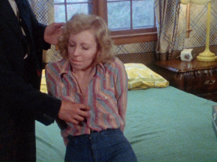Moving into true roughie territory, another gritty '70s title given its first respectable home video release on DVD via Vinegar Syndrome is 1975's Intrusion (or, according to the title card, The Intrusion), a particularly nasty home invasion/sexual assault quickie about a particularly ugly day in the life of New York suburban housewife Ellen (Kim Pope) when her husband (Levi Richards) takes off for a long business trip. Posing as an insurance salesman, an anonymous creep (Michael Gaunt) shoves his way into the house and forces himself on her for a very protracted period of time. Ellen hopes salvation will arrive with her best friend Gail scheduled to come around, but the intruder has other plans... This one also had a pretty dismal video history including a torn-up print source used for Alpha Blue's gray market DVD (as part of a Lost Films of Kim Pope set with VHS-sourced presentations of Summer of Laura and Schoolgirl's Reunion), so it shouldn't be much of a shock that the Vinegar Syndrome one stomps the others into the ground. It looks immaculate (relatively speaking, for what the film is) and sounds infinitely better, especially when it comes to another ominous, experimental electronic score. Extras include the theatrical trailer and an interesting 18-minute interview with Gaunt (a.k.a. Michael Dattore), who chats about his early acting career (where his "wise guy" personality kept him from getting repeat gigs) and how his audition for this, his debut film, turned out to be a first-time project for a couple of guys trying to pay off their student loans!