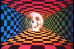 One of the most famous entries from one of the briefest fads in movie histroy, the 3-D feature-length porno, is The Starlets, another entry in After Hours' "Grindhouse Directors Series," this time dedicated to the much more obscure David Summers. Actually 90% of the film makes no use of the 3-D format (here dubbed as Quadravision 4-D, whatever that means), only to throw in some hilarious third-act visuals like flaming sparklers (during an orgasm), clutching disembodied hands, ooga-booga devil masks, and psychedelic skulls. Sound weird? Yep, it is, but that's not surprising given that this was produced by exploitation vet John Lamb (under the name "M.C. von Hellen"), whose Mondo Keyhole was an obvious influence here. The film itself has virtually no plot, instead revolving around the fleshy shenanigans at the Starlets Club, an exclusive Hollywood organization where everyone apparently gets together at a mansion and samples a bunch of upscale hookers. The cast includes a lot of familiar faces including Desiree West, Candida Royalle, John Leslie (briefly), Joey Silvera, and Ken Scudder, and Summers does a surprisingly deft job at juggling numerous simultaneous scenes together for the entire running time, creating the impression of forward momentum for the film itself rather than stopping dead for one isolated scene after another. Summers turns up for the DVD's liner notes booklet and contributes quotes about the film and the challenges of shooting in 3-D as well as its lesser shot-on-video sequel, Chastity and the Starlets, whose star, Bill Margold, also pops up for a quick interview about his career and the intimate challenges of shooting sex scenes in a chlorinated swimming pool. Both films are presented full frame from what appear to be the original elements (great for the first title, but that ain't saying much in the case of the second film which looks like it was shot on VHS) and include trailers for both films as well as the usual After Hours cross-promotional stuff.