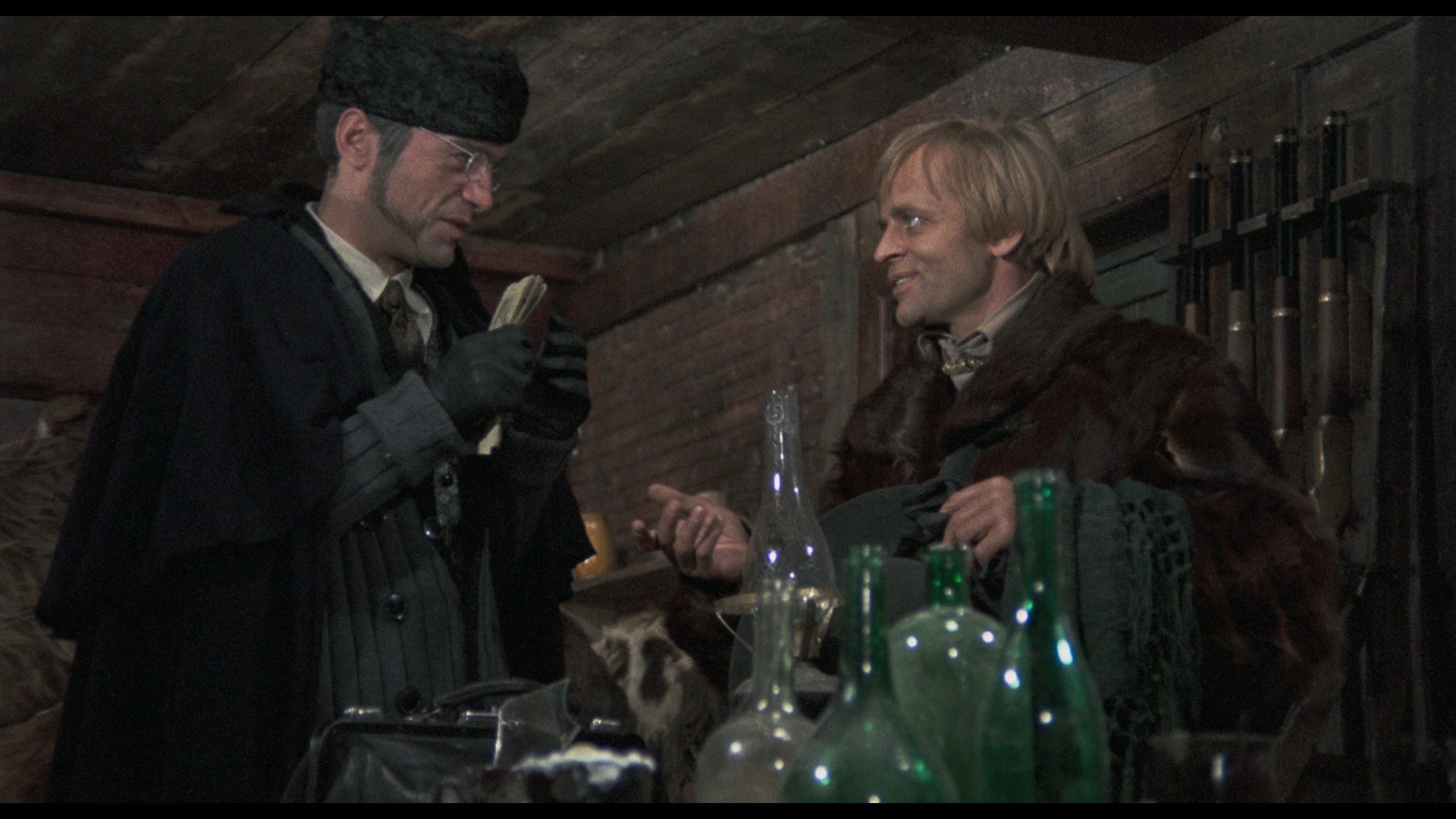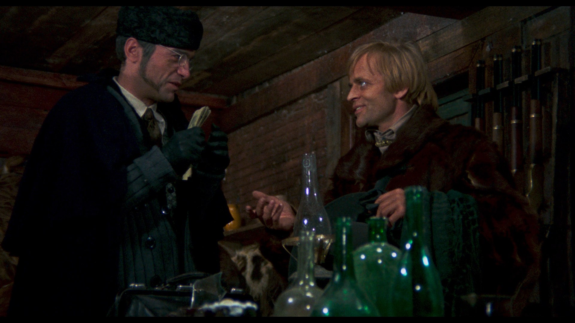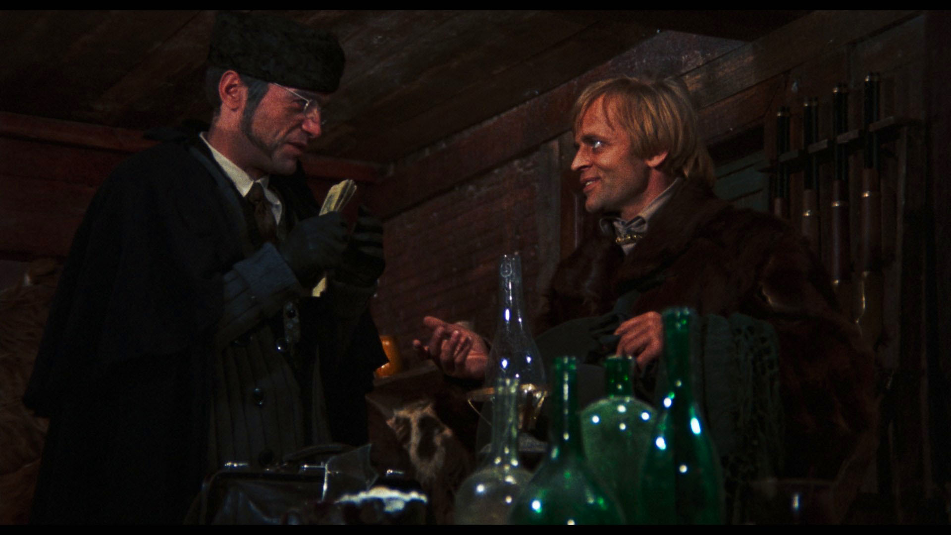 amping up the saturation a lot, which turns disastrous in dark firelight scenes (such as the third frame grab comparison below). Here you get the Siegel commentary plus two new ones, the first with writer Howard Hughes and filmmaker Richard Knew and the second with Cox, all worth checking out as they surprisingly don't overlap much. All of the featurettes from the Film Movement disc are ported over here, plus an appraisal by Austin Fisher (14m28s) and the Italian trailer. A 4K restoration was later undertaken and premiered on German UHD and Blu-ray in 2025 from Filmjuwelen; the HDR-compatible Dolby Vision grade makes a big difference here, handling the tricky color and texture choices in the film more skillfully and giving a sense of depth here that was missing before. More image info