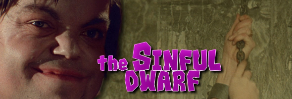 Sporting one of the greatest titles in sleaze history, The Sinful Dwarf has been an underground video mainstay for at least two decades based on sheer curiosity value alone. Fortunately the film itself delivers exactly what you'd expect -- namely a perverted, cackling little person (played by former Danish family TV figure Torben Bille) who lives in a boarding house with his equally demented ex-showgirl mother. One by one he stashes female guests up in the attic where he keeps them hooked on smack and available for seedy clients to enjoy. The main, er, thrust of the story concerns the mishaps of a young couple, Mary (Sparrow) and Peter (Eades), who decide to stay at the house, and by the third act hubby's wondering why his blushing bride seems to have disappeared.