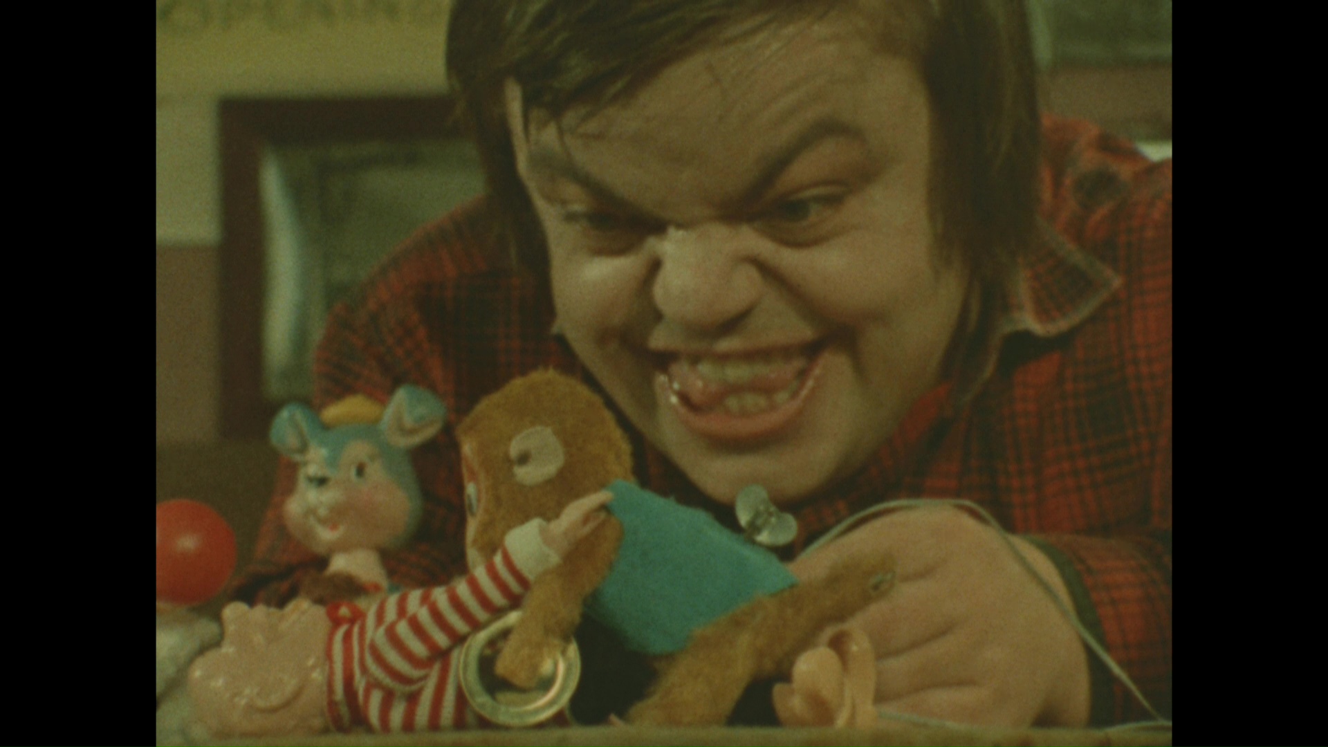 Show in Town (which was available at one time via a gorgeous French DVD from Alpha France and is due for a release from Vinegar Syndrome) in which a purportedly younger and skinnier Torben embarks on a sorta-kinda explicit sex scene with a female dwarf. Finally you get another treat provided courtesy of Vinegar Syndrome, a 16mm HD transfer of the hardcore Danish art film The Blue Balloon. Previously seen on the After Hours Grindhouse Hostage Collection DVD, this one looks better here thanks to an improved transfer but still looks like a pretty rough, grubby little '70s Euro sex film. Is inclusion here is apropos due to the the fact that it was purportedly made by the producers of The Sinful Dwarf and features two of its actors, Lisbeth Olsen (who played one of the attic girls) and the guy who played the final, kinkiest attic john, both of whom go way more hardcore here than they did in the main feature. The plot is pretty simple, tragic, and lurid: after her husband goes out of a town, Olsen winds up getting drugged and raped by a crazy lesbian who turns her into a prostitute by offering her to a succession of tricks. Soon our heroine's out on the streets soliciting her way towards a twist ending that at least offers a glimmer of hope. Definitely a nice curio to have here as a bonus for sure. Also added on here for good measure are the DVD promotional trailer Severin cut for the '09 release and, believe it or not, a TV spot. And being the sick puppies that they are, Severin also created a Sinful Dwarf plush toy you can buy separately or in a bundle to promote this release, which you can cuddle nice and tight with while you watch this unrepentant slice of '70s Euro sleaze.