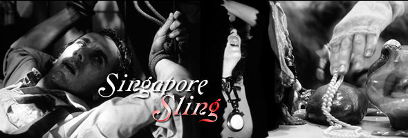 They take the man back home and call him Singapore Sling, initiating him into their twisted world in which they reenact the gruesome deaths of their domestic help-- as well as a young woman named Laura, whom Singapore Sling has been seeking. Completely insane, the women subject him to a variety of ridiculous sexual ordeals involving shock therapy, bodily fluids, various foodstuffs, and handcuffs, not necessarily in that order. Not surprisingly, all three are sucked into a vortex of perversion that will prove difficult to escape.