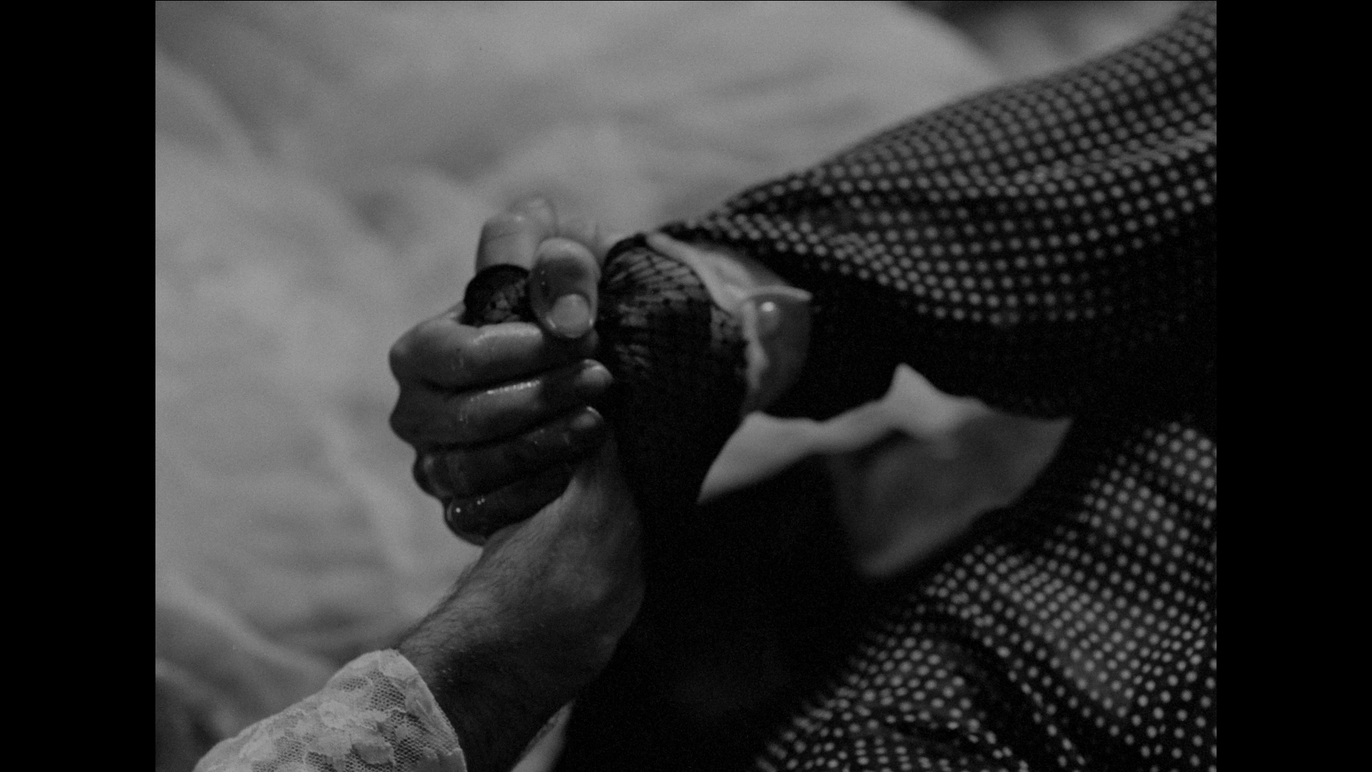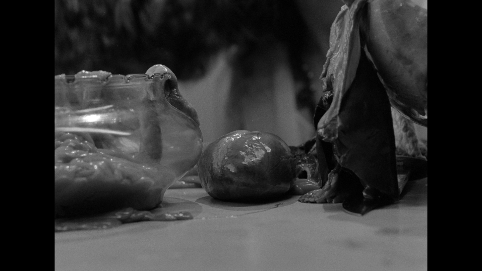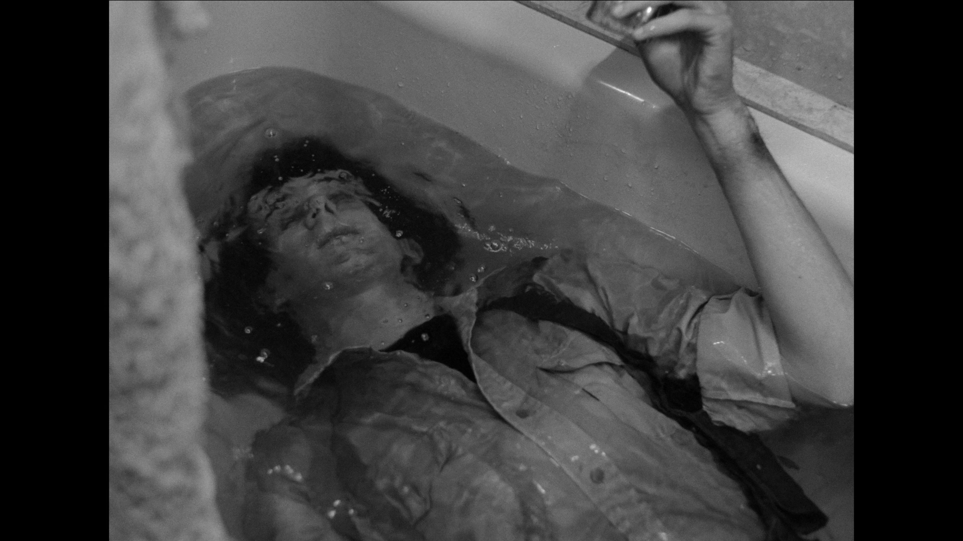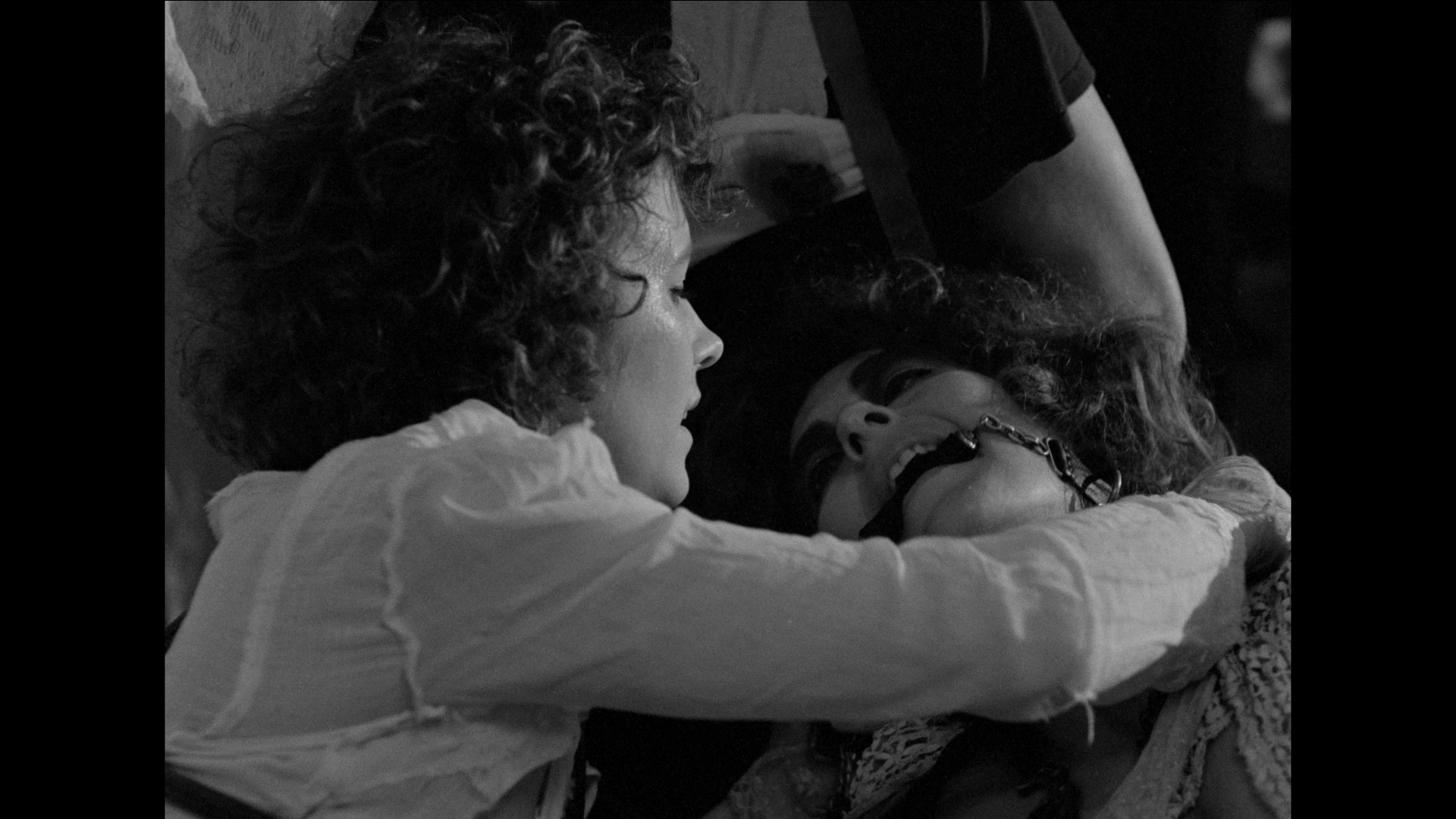 Image quality is superb with rich blacks and fine detail, and the DTS-HD MA 2.0 mono audio is excellent as well. The 2011 doc "Directing Hell" (80m47s) covers the work of the late Nikolaidis via a wealth of video material including Q&A appearances, academic assessments from the likes of film critic Rozita Sokou, interviews with actors including Jenny Kitseli and Takis Moschos, and tantalizing film clips from a lot of titles you'll probably never see on U.S. home video. Also included are separate new interviews with the director's wife, Marie-Louise Bartholomew (11m39s), Valley (12m22s), Thanassoulis (9m6s), and cinematographer Aris Stavrou (5m23s), which touch on the production process, prior projects like the unorthodox Euridice BA 2037, the arduous but often rewarding extremes of the performances, the evocation of classical art and cinema imagery, the director's occasional taskmaster tendencies, and thoughts on the film's very divided and turbulent reception. The package also comes with a 20-page insert booklet featuring a new David Church essay about the film's transgressive approach, its use of noir elements, and place in the '90s art-horror landscape.