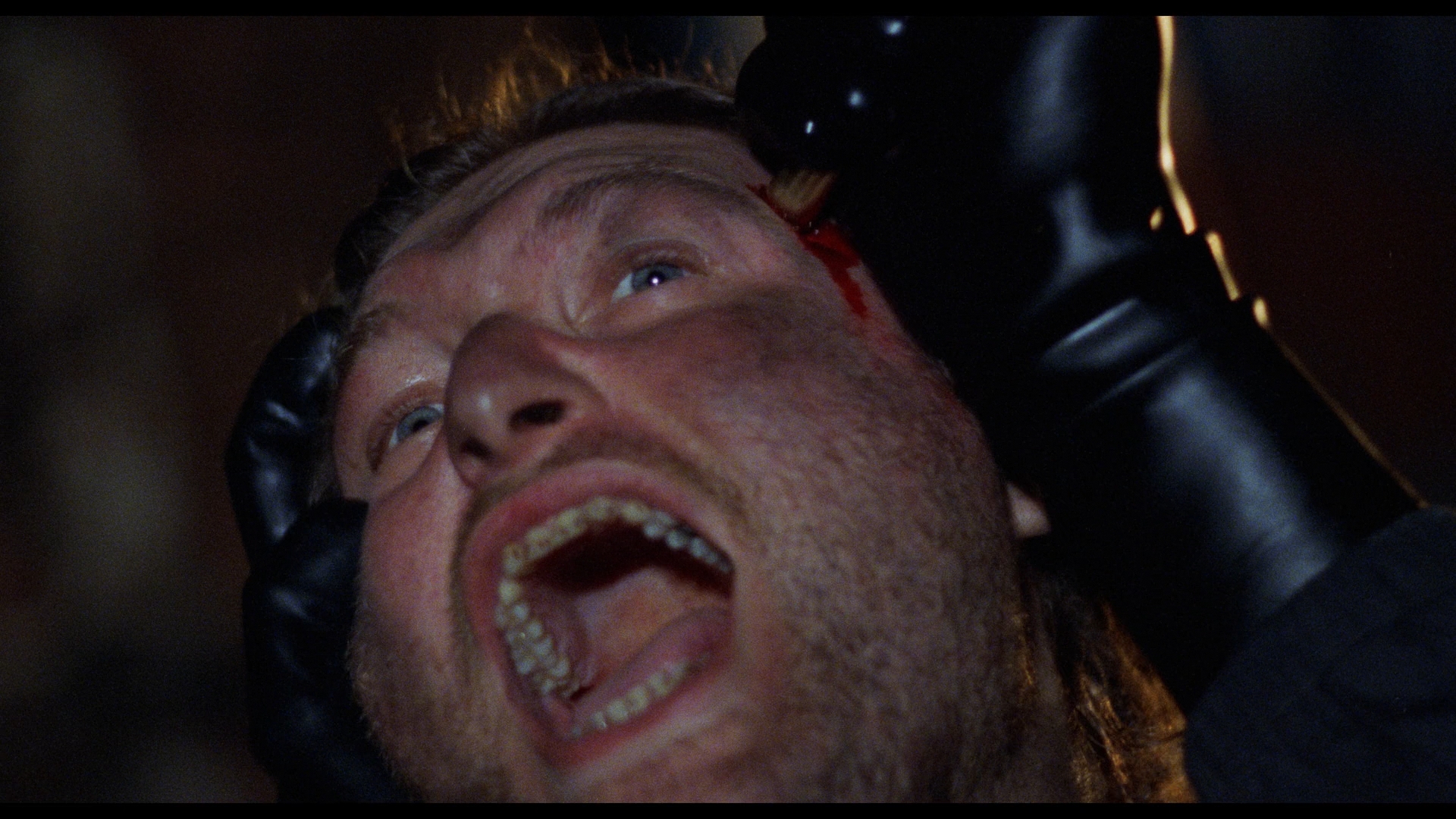 The commentary and all five featurettes from the Scorpion release are ported over here, and six substantial new featurettes are added as well. "Still Awake" (15m15s) with Caselli has her chatting about reuniting with onetime boyfriend Dionisi, her previous work with him, her memories of the "reserved" Von Sydow, the honor of appearing with Falk, and her thoughts on acting in English or French versus Italian. In "The One Who Saw" (9m36s), Dionisi covers making this film after a previous one with Argento didn't pan out (The Stendhal Syndrome since he didn't want to get crushed with a car hood!), his positive memories of his fellow actors, the status of the dwarf as the "real star," his thoughts on the horror genre, a supernatural rumor that emerged on set, and memories of the effects engineering by Sergio Stivaletti and Ronnie Taylor's cinematography. In "Behind the Smile" (16m59s), Zibetti (who somehow looks exactly the same) discusses growing up in Turin, his familiarity with Argento, his own aversion to horror, his prior key roles, and his approach to his character with direction ranging from calm tea chats to talking about "brain chunks." "The Invisible Work" (25m9s) with editor Anna Napoli covers the process of going through the dailies with Argento and Taylor, the director's surprising squeamishness during the nail-cutting scene, the calibration of image with the music and sound effects, and the execution of that carpet sequence. In "One Last Score" (21m39s), Claudio Simonetti goes into his final go-round here with Goblin, the Turin location a la Deep Red that inspired the idea of bringing the band back together, the story behind that short-lived reunion, and his general musical collaborations with Argento before and after this film. Finally in "Bloodwork" (19m54s), Stivaletti is interviewed about his working methods with Argento, the experiments he made on this film, the creation of multiple head casts to get mistreated on camera, the mixture of digital and practical effects for one show-stopping moment, and his involvement in non-gore effects like the opening torrential rainstorm. It's worth noting that several of these interviews are peppered with some great making-of footage, too.VINEGAR SYNDROME (UHD)