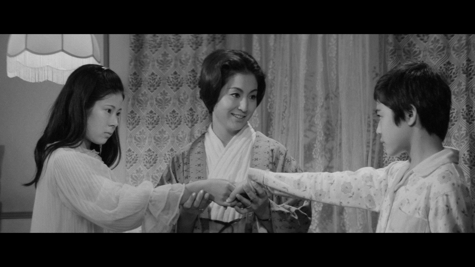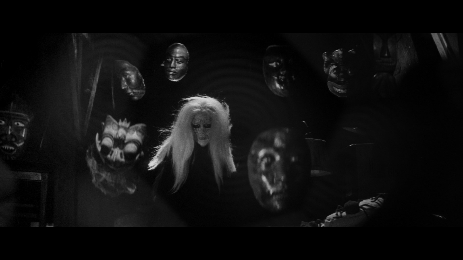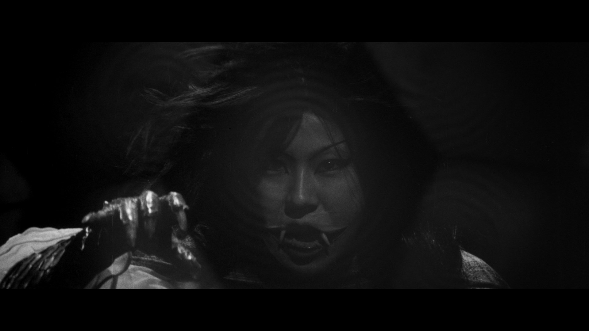 definition scan that makes for a great way to make this film's acquaintance. The source element has been kept in very good shape with only some minor damage here (mainly some brief, easily ignored hairline scratches in the opening orphanage scene). The LPCM Japanese mono audio is also satisfying and does justice to the wild theremin-heavy score by Shunsuke Kikuchi (Goke, Body Snatcher from Hell), with optional English subtitles provided. The film can also be played with a new audio commentary by the always welcome David Kalat, who's full of info about the film including some amusing tidbit about Yuasa's obvious Uzumaki-style obsession with stripes and spirals that spills over dramatically into this film as well as his own personal fashion choices. He also does a fine job of tying this film to other Japanese genre trends while anticipating the J-horror wave that would explode with Ringu and its successors. The big video extra here is "This Charming Woman" (27m40s) with manga and folklore scholar Zack Davisson covering the film's somewhat confusing authorship from page to screen and the story's use of European narrative tropes similar to the Brothers Grimm, albeit inverted here a bit with its depiction of maternal figures. Also included are the subtitled Japanese trailer and an image gallery, while the packaging features artwork by Mike Lee-Graham and, in the first pressing only, an insert booklet with an essay by Raffael Coronelli.