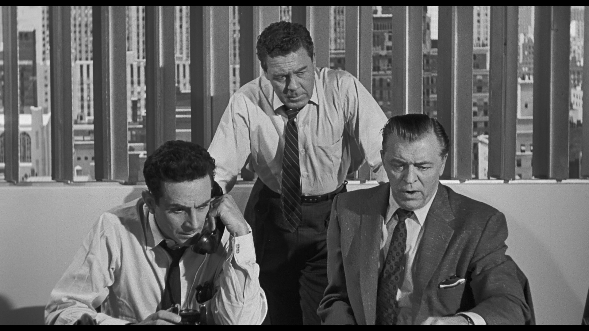 Edwards. This one hasn't gotten quite as much traction as that earlier film, even with its placement in the 2010 Columbia Pictures Film Noir Classics II set (rubbing shoulders with Human Desire, The Brothers Rico, Nightfall, and Pushover). However, it's rather potent viewing now with its theme of a city at risk from contamination, putting this in tiny company with Elia Kazan's Panic in the Streets from 1950 as film noir viewing of choice during the pandemic era. Edwards chucks his pretty boy persona out the window here as Vince Ryker, first seen speeding through the night in a car with his fellow inmate after escaping from prison. Vince is toting along a canister he's swiped that he believes contains a pound of heroin that could turn a quick profit, but it's actually housing a dangerously radioactive substance, Cobalt-60. Disguising himself as a bespectacled businessman, Vince makes his way into San Francisco and starts to sweat profusely as the authorities and scientists desperately scramble to find him before the rest of the population is contaminated as well.