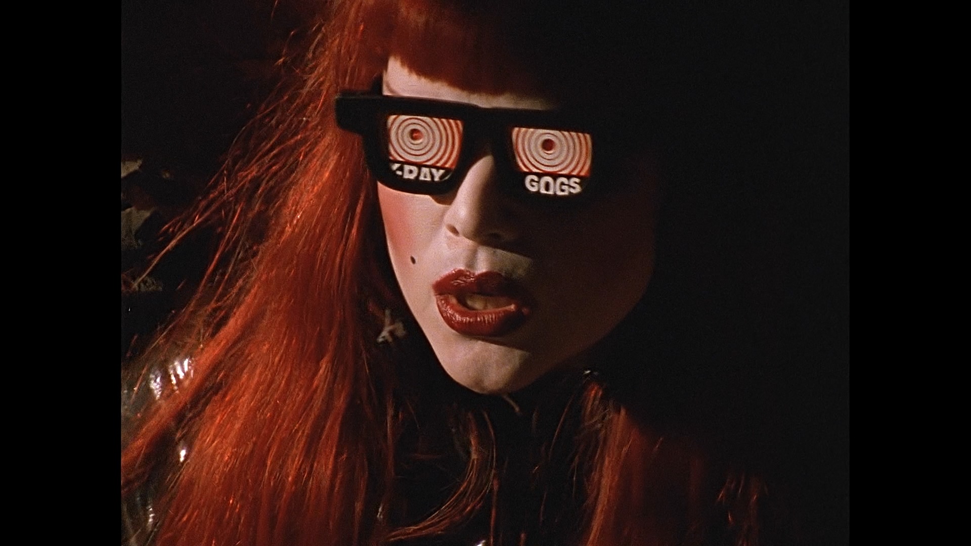 (44s), and five films by Emmy Collins: "Jack the Dipper" (7m36s), "Headshot" (7m4s), "Punk vs. Hippie" (1m10s) which is weirdly just a clip from the main feature in Spanish, "The Egoist" (1m59s), and "TV Humper" (1m57s). Then you get a bunch of related music videos from McCarthy and company: Guitar Wolf's "Invader Ace" and "Butobase - All Through the Night;" The Oblivians' "The Leather;" The Clears' "We Are a Rock 'n' Roll Band;" The Makers' "(Are You on the Inside or the Outside of) Your Pants?," "Lover Lover," and "Psychotropic Supergirl;" 200 Sachen's "Ganz Neu;" Poli Sci Clone's "Did She Follow Stars;" River CIty Tanlnes' "Looking for a Line;" The Real Losers' "She's Outta Control;" The Cute Lepers' "So Screwed Up" and "Terminal Boredom;" The Flakes' "Talk About You;" and The True Lovers' "Death Threat." Kerine Elkins is represented with two songs from the cabaret act "The Blue Soldier" (9m37s), followed by Super 8 B&W footage of San Francisco during the film's screening tour (2m43s) and four short segments sourced from VHS about the film's visual effects: "Wheat" (1m49s), "Kevin Webster" (45s), "Drangonwyck" (3m40s), and "Joe Riley" (6m22s)
