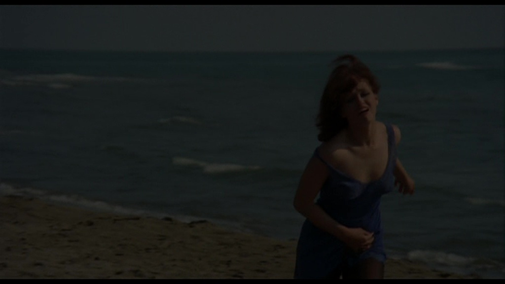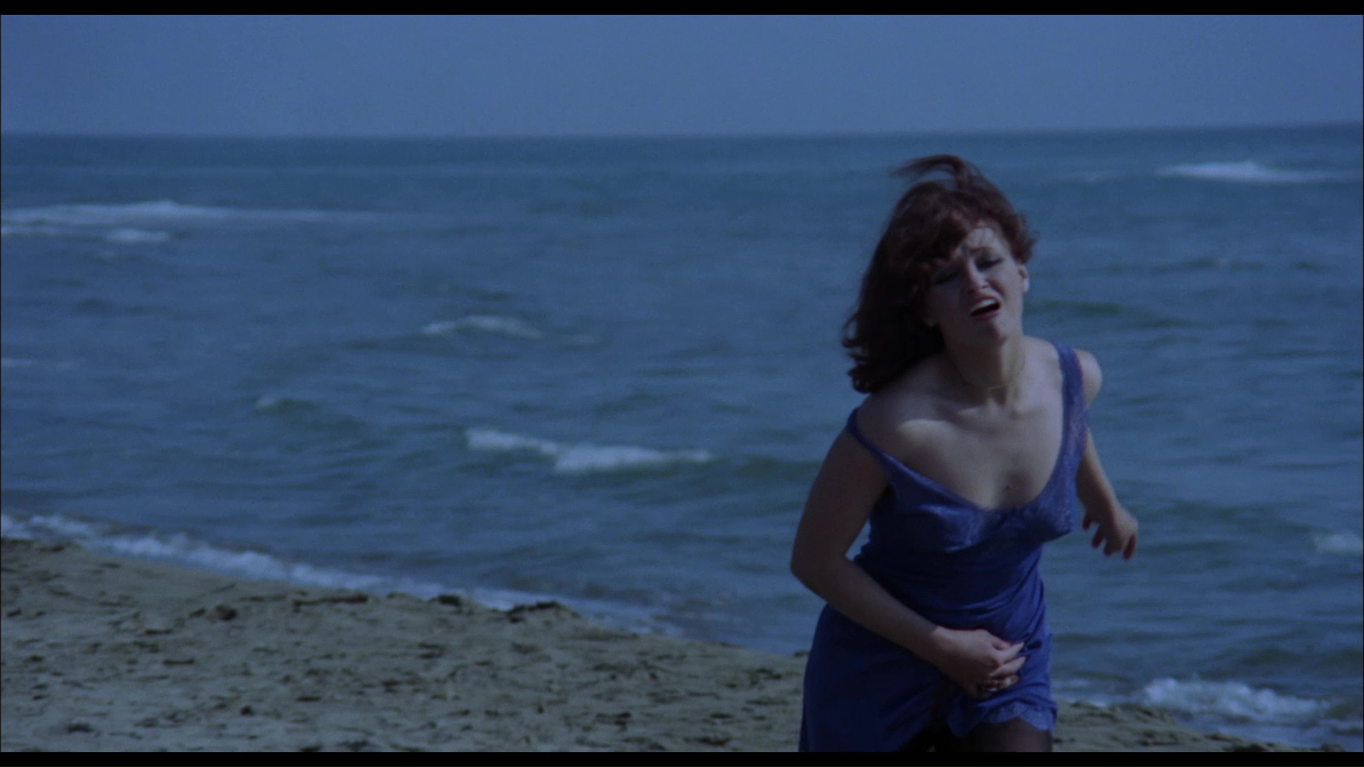 In 2017, Code Red brought the film to Blu-ray with its more grindhouse-y English dub (DTS-HD MA mono) and cover art sporting the Slasher poster art in all its sordid glory. The actual HD transfer from what appears to be the English-language export version negative is actually So Sweet, So Dead, and the image quality looks quite impressive with a generally warmer and much more detailed appearance. It's also much easier to make out the beach pursuit scene, which was extremely dark on the DVD. Framing-wise there are some substantial anomalies here, with some scenes featuring less peripheral information on the edges of the frame and others looking either identically framed or close to it. Not surprisingly, some of the brief VHS-sourced extra footage not present in the original negative is absent here (the extra angles of Scott writhing around and an alternate, tighter version here of her full nude shot). This transfer also runs at the correct film speed so it clocks in at over 100 minutes versus the 96 and change on the DVD. Extras include a dupey English trailer and bonus trailers for After the Fall of New York, Hands of Steel, Cry of a Prostitute, The Great Alligator and Almost Human. Updated review on August 10, 2017