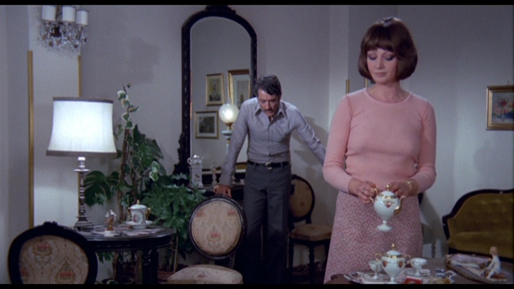 Don't worry though; it's quite a quick interruption, and the attention to detail here is welcome. Mono audio options in Italian and German are included with optional English and German subtitles. The widely bootlegged English dub is absent here; Granger (star of Hitchcock's Strangers on a Train and Rope) didn't provide his own voice but spoke his lines in English, and it looks like everyone else was speaking Italian or something else. (Incidentally, Farley was quite busy in the early '70s in Italy appearing in the likes of They Call Me Trinity, Amuck, The Red Headed Corpse, and a puzzling bit part in What Have They Done to Your Daughters?). As a result the Italian version has a markedly different tone, and some of its sexual politics are a bit more complicated than expected.