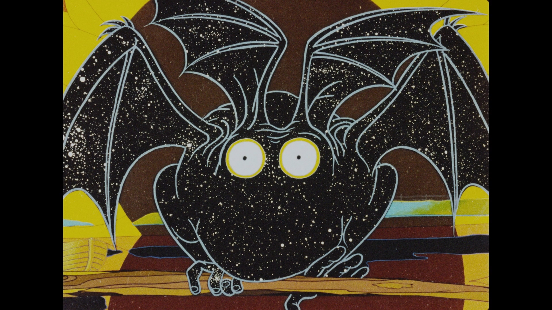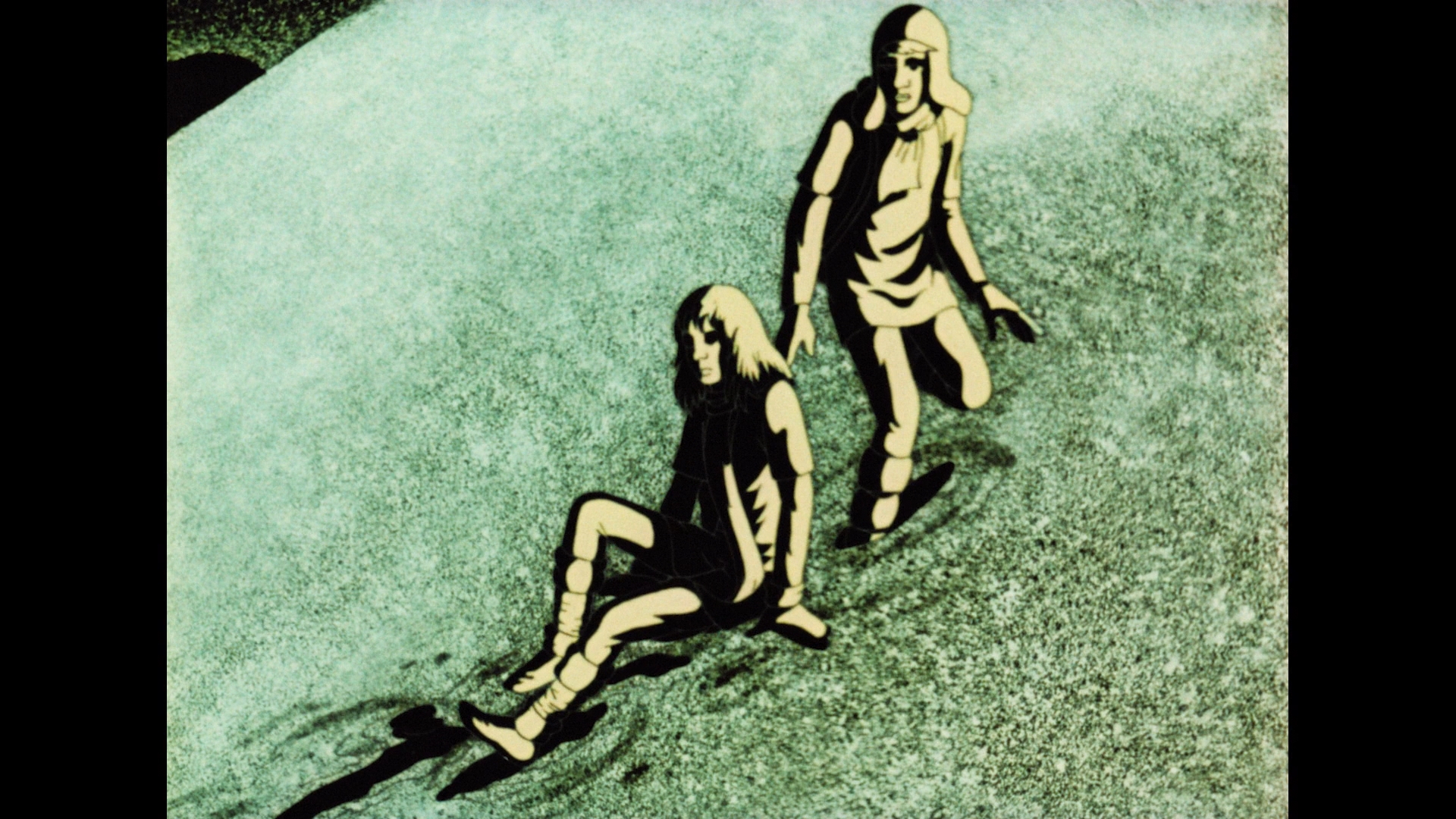 daydreams or memories focused around childhood and floating in space. Eventually a novel yet simple solution seems to present itself. Very much in keeping with the tone of David Bowie's Major Tom cycle, this is a beautiful and hypnotic vignette. Running much longer at half an hour is Tarasov's The Pass from 1988, written by Kir Bulychov from a portion of his novel The Settlement. Essentially it's a snapshot in the existence of survivors of a spaceship crash who are now stranded on a harsh planet inhabited by alien lifeforms. The young of them, Oleg, was a baby when they arrived, and now they live far from the crash site. When a trip back to the ship is necessary, Oleg and three others make the trek by foot and reconnect with their earthly existence while finding a renewed sense of purpose. The animation here is moody and beautiful with wild shades of yellow and red, including a spellbinding storytelling sequence around candlelight, and the environment is give a great deal of attention and detail that would put many feature-length films to shame. Specs are the same here, and the same trio return for an audio commentary covering comparisons to the source novel (which has more of a split narrative), the beautiful nuances of the animation and use of color, the unorthodox score choices, and ties to the rest of his work. Chester is also back with another video essay, "Vladimir Tarasov" (17m20s), featuring extensive coverage about his many short films, his amusing appropriation of familiar cartoon characters, the adoption of jazz and familiar soundtrack music in his films, and Bulyachov's issues with the end