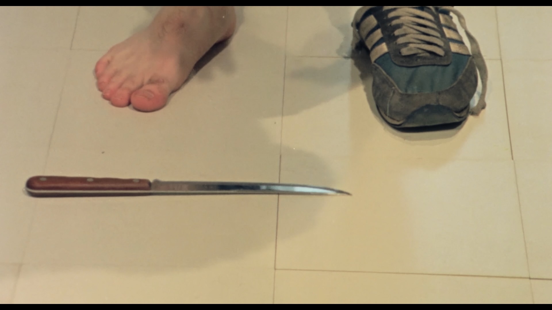 Syndrome's Brandon Upson covers his entry into composing including his attendance at NYU (thus his hiring on this film), his love of Jerry Goldsmith, the use of synthesizers (and its current fetishizing), and the necessary approach to scoring a slasher movie in a post-Halloween world. Also included are the theatrical trailer, a TV spot, a script gallery (7m25s) under the film's original title (confirming that what seems like the best way to end the film actually was the original closing shot), a batch of radio spots (2m21s), a gallery of stills and promotional artwork (4m2s), and an option to play the main titles music (56s). The Interestingly, both releases' reversible covers and disc labels make prominent use of the film's alternate key art that hilariously pilfers its central image from The Beyond. CINESTRANGE EXTREME (Austria Blu-ray)