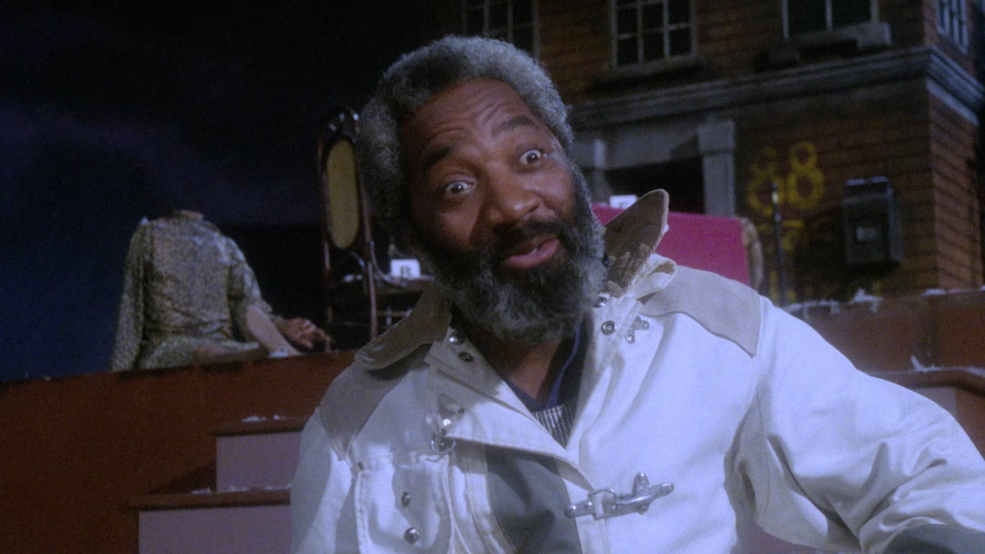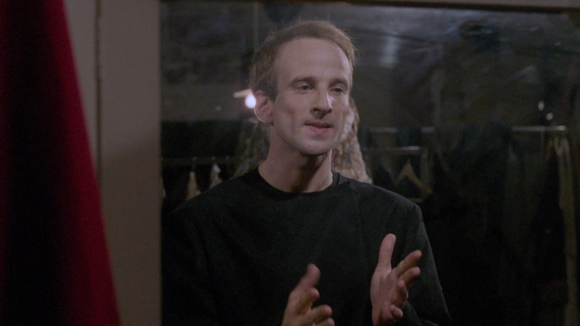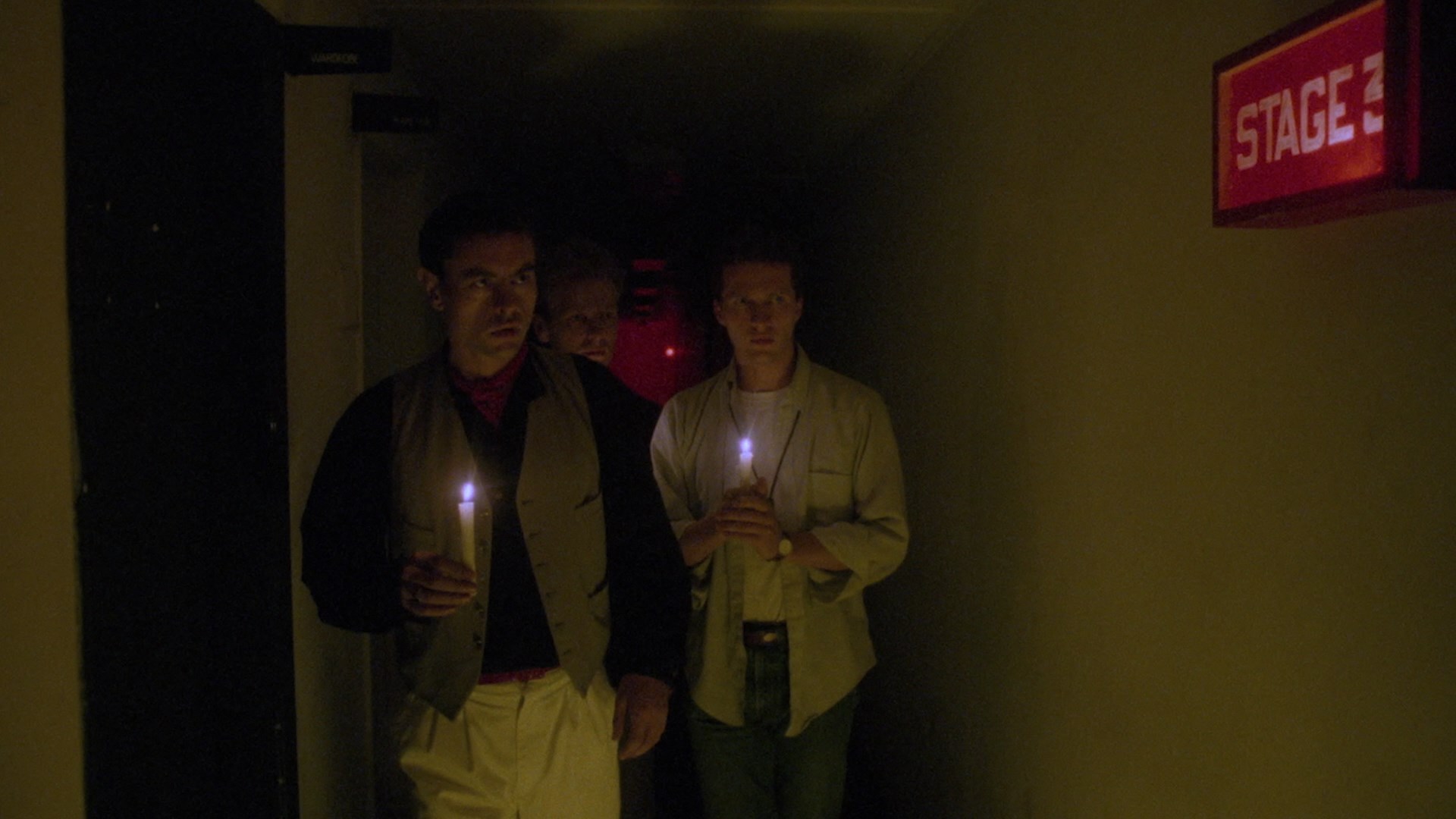 In the new "Staging the Fright" (44m22s), Soavi gives a much longer and more detailed history of the film and his professional relationship with D'Amato than before, as well as the differences working with Dario Argento and Gilliam, his own creative process, the appeal of Agatha Christie-inspired body count conceit, the influence of some key works of fine art, and some of the key shot decisions he made. In "Theatre of Blood" (21m1s), Radice chats about all things Soavi from their early days acting together on City of the Living Dead through his approach to his juicy role in this film, including the less than optimal shooting location and the threadbare nature of the production at times. Finally in "The Last Performance" (21m14s), Brandon goes into his back-to-back shooting with the Taviani brothers on Good Morning Babylon, the effective nature of the isolated sound stage, his previous encounters with Soavi and D'Amato playing Caligula, and the balance on set between director and producer.
