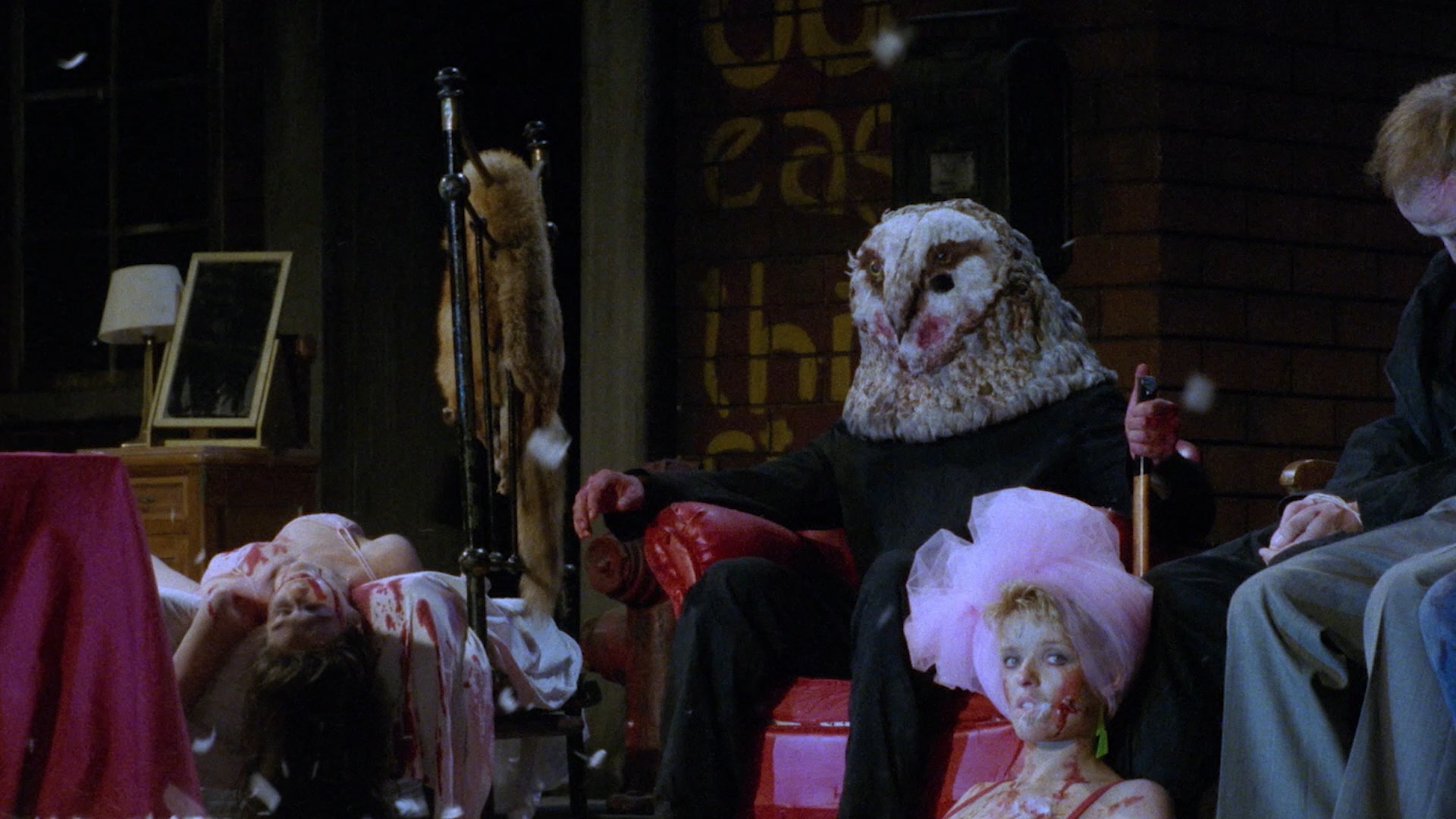 Of course, the main attraction for many here will be the bounty of new extras, kicking off with "Theater of Delirium" (19m1s). This interview with Soavi (who also has a small role in the film as a cop fixated on James Dean) is presented in SD and covers the director's early associations with D'Amato, the circumstances behind the film's creation ("a crazy idea"), the reason he went off to work for Terry StageFrightGilliam, the creation of that giant key seen in the climax, and much more. Interestingly, no attention is given to Soavi's later films Stage Fright(most notably The Church, The Sect, and Dellamorte Dellamore), so we can only hope those will get the same treatment somewhere down the road. Things get significantly crazier with "Head of the Company" (11m40s) (in HD), a chat with David Brandon. The Irish-born actor talks about D'Amato, Soavi, several of his co-stars (including some pretty unexpected samples of fellow actor Robert Gligorov's photographic work that might ruffle a few viewers' feathers), and his other colorful roles including one hilarious incognito bit behind a fake beard. The always entertaining Radice gets his turn next with "Blood on the Stage Floor" (14m) (also SD) in which he talks about appearing with Soavi in City of the Living Dead, doing some tweaking to the film's screenplay, the difficulty of shooting animal guts without air conditioning, the reason he nicknamed Soavi "Peter Pan," and some of his later films they made together for producer Dario Argento. "The Owl Murders" (11m21s) (HD) features makeup effects artist Pietro Tenoglio covering the challenges of the locale, the camaraderie of the low-budget shooting conditions, the plaster required to pull off a decapitation, and the advantages of improvising gore effects in your own garage. "The Sound of Aquarius" (18m2s) with composer Simon Boswell plays like something of a companion piece to his equally excellent interview on Synapse's Demons 2 release, though here you get some fantastic early video footage of him performing on stage along with lots of memories about Argento, the odd collisions of rock music and soundtrack work, the contributions of Mainetti, and a peculiar StageFrightproject about Pope John Paul II. Finally the disc rounds out with the theatrical trailer and a gallery of stills and poster art.