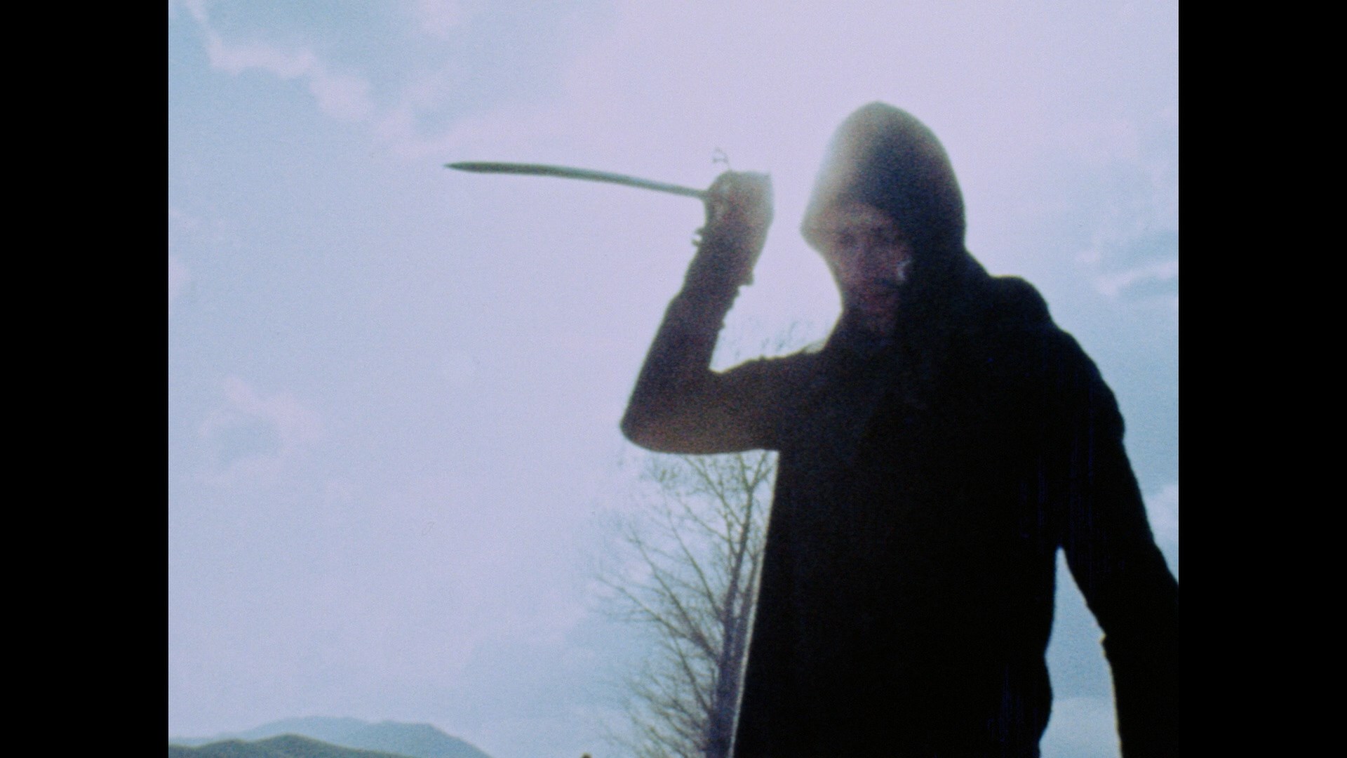 like Scream or Ghostkeeper, this should do the trick... plus it's the only proto-slasher film featuring "Peanuts the Pony." Barely given any sort of theatrical release, this one hit VHS in the early '80s in its shorter form and then went to DVD from Media Blasters in 2004 (under its Shriek Show emblem) complete with a an intro by Joe Bob Briggs (6m9s) noting the film's combination of Steckler idols Ed Wood Jr. and Michelangelo Antonioni, plus video interviews with Steckler (14m3s) and Brandt (10m41s) about the film's title, its strong heroine role, and the creation of both versions. Both interviews and the intro are on the Severin Blu-ray, which presents both versions with Blood Shack being the default main one (with excellent video quality) and The Chooper in the extras, looking a bit lesser. A Steckler commentary lays out the film's making including his need to make a film for chump change, the big shift in his life going to Vegas, his relationship with Brandt at the time, and more. Briggs and AuBuchon also contribute tracks (yes, we now live in a world where Blood Shack has three audio commentaries) going more into the film's status within Steckler's output, the different versions, and its tattered release history, just for starters. A reel of outtakes (12m41s) is also included featuring more credit drawings, desert footage, and cute kids.