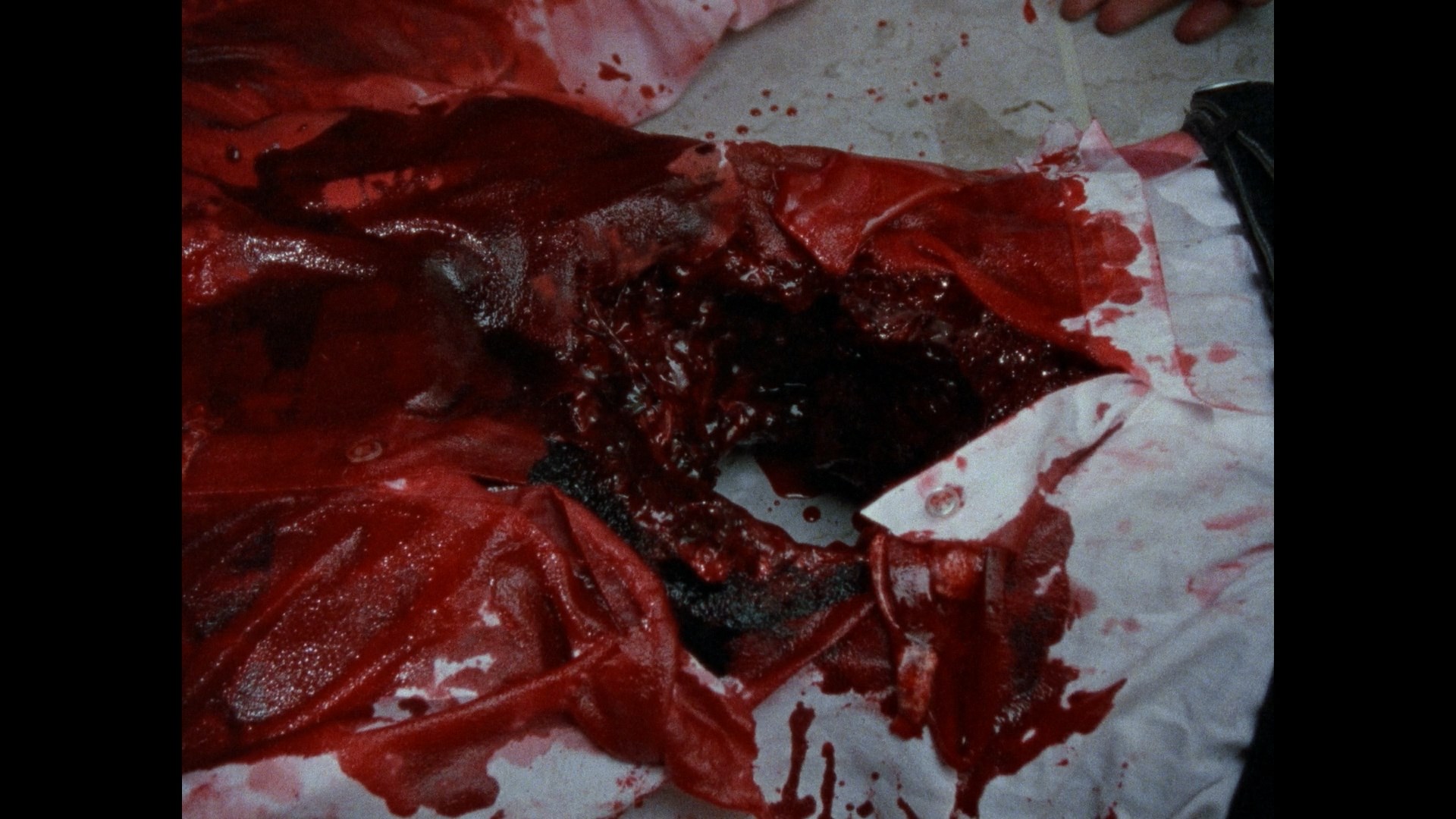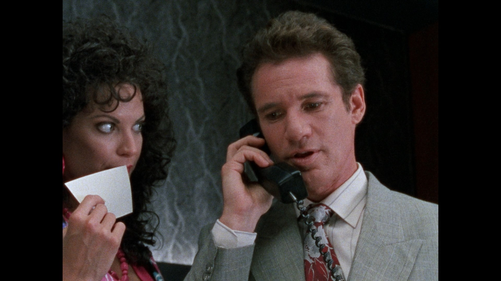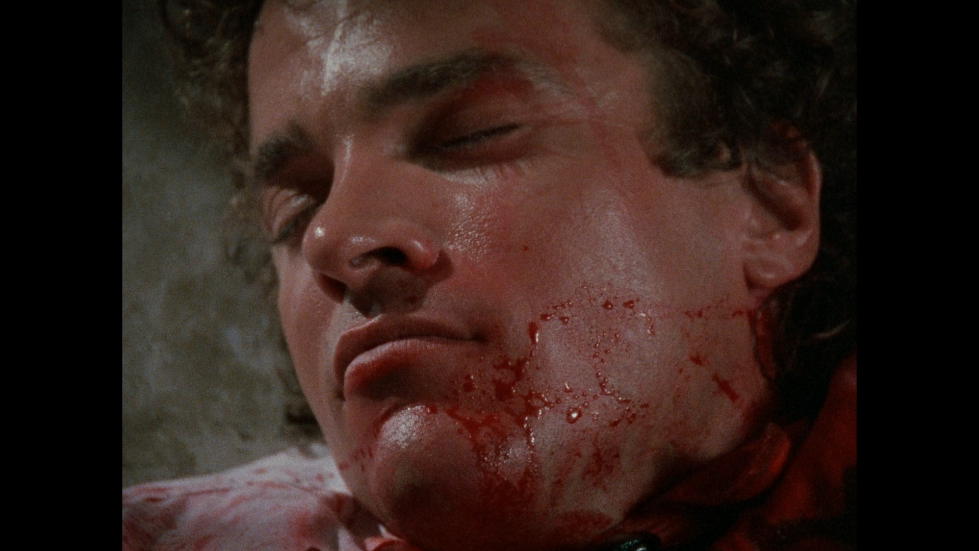 in two options, the commonly seen 1.33:1 version (as intended since it was going to head straight to video and cable anyway) and a matted 1.78:1 version that gives you a pretty good idea of how this would have looked as a theatrical release. The 1.33:1 one looks more comfortable with reasonable headroom throughout, but the matted one is kind of workable as well if you want to fill up your widescreen display. Quality-wise the film is in very good shape overall with nice detail and color apart from optical-heavy main titles, which inevitably look a generation or two lower in quality. The DTS-HD MA English 2.0 stereo track sounds good for a fairly simple two-channel mix, including the score by John Massari (Killer Klowns from Outer Space). Farino appears for a very thorough new audio commentary going into the ins and outs of the production, from careful blocking to obscure troublesome billboards to the intricate makeup process that could sometimes wreak havoc on the actors. As usual for MGM, their legal department has likely gone to town on this one given the number of abrupt silent gaps that pop up. Then in "Iron, Carbon, Anger: The Elements of