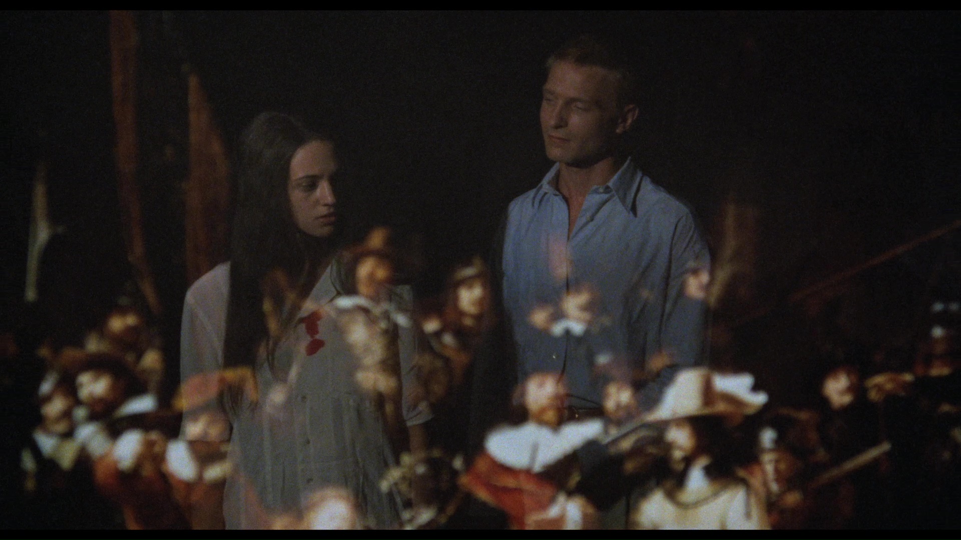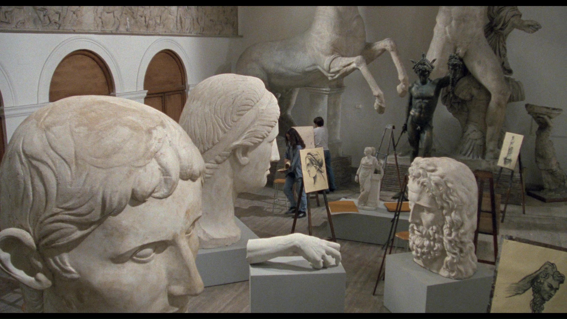 whites (which bordered on blowing out entirely on the older transfer) now looking more natural and under control. On the more controversial side, in the first pressing, dusky indoor shots with heavy grain and low light were insufficiently handled by the encoding and raised the ire of several consumers; a revised pressing was made available with a beefier, more careful encoding (which, interestingly, is also a couple of ticks brighter). Replacement discs can be obtained by emailing StendhalBDreplacement@gmail.com. The superior Italian track is treated for more respectfully here as well; it's the default option when you play the film, in DTS-HD MA 7.1, Dolby Digital 5.1 (the old DVD mix), and DTS-HD MA 2.0 stereo options with optional yellow English subtitles. You can pretty much skip the 5.1 version unless you have receiver issues; the 7.1 is