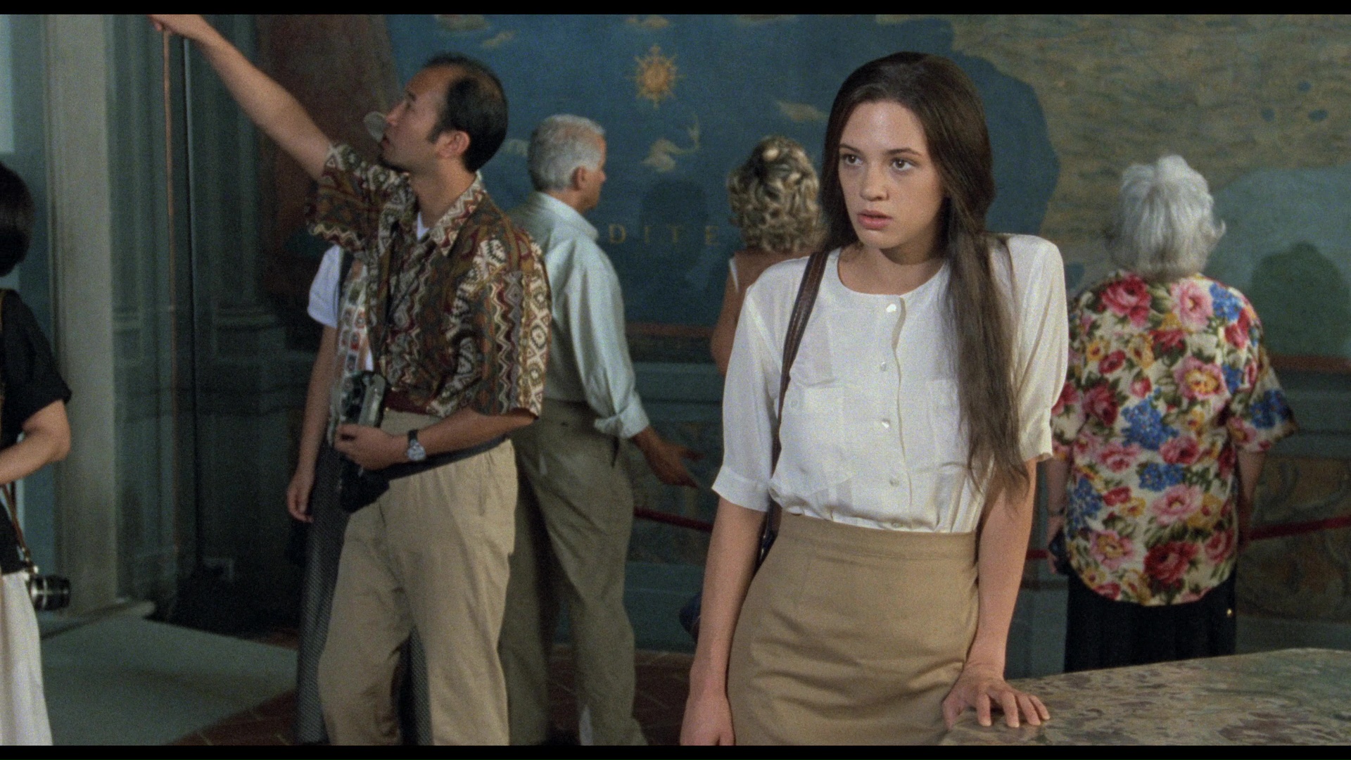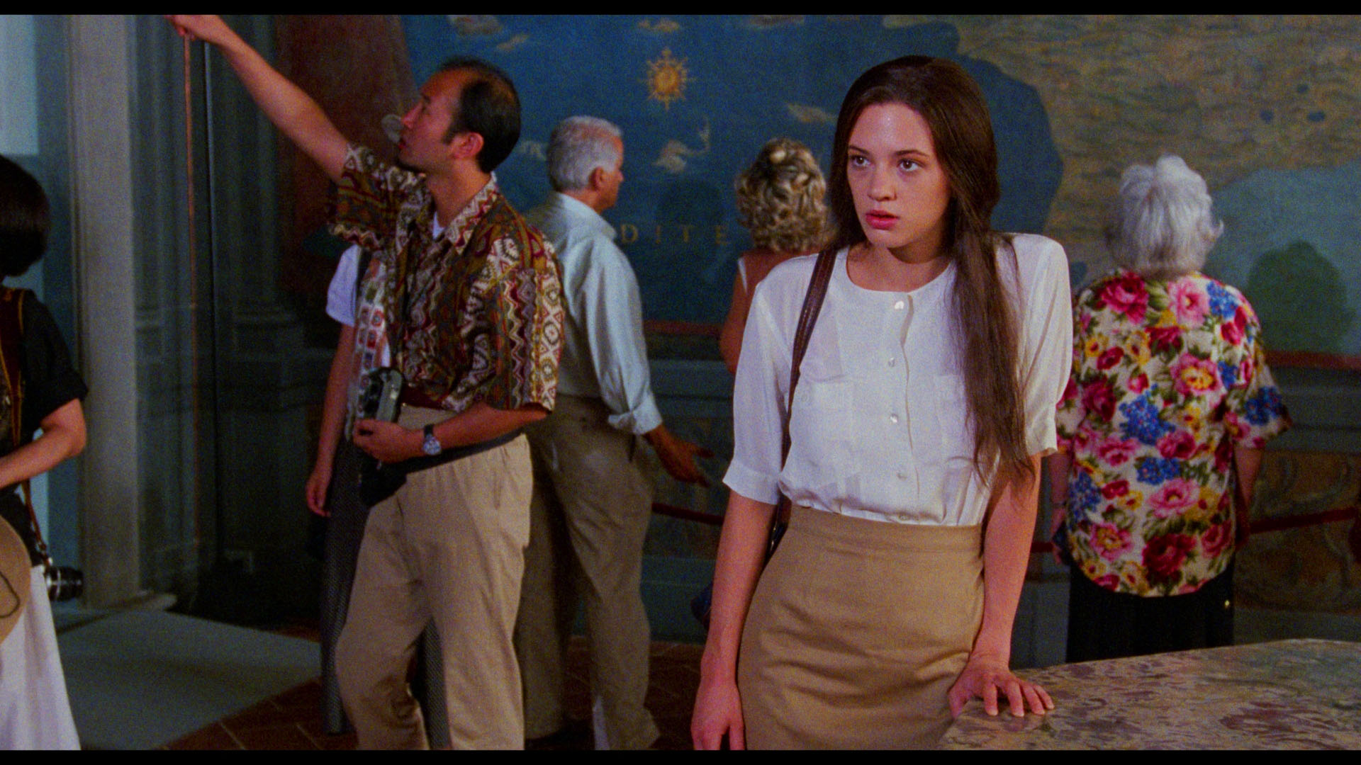 "Three Shades of Asia" (20m1s) features the actress in very articulate form as she recalls the shoot in vivid detail, charting the Florence shoot, the experience of shooting in the legendary Uffizi, the flickerings of the titular syndrome she experienced herself, the visual trickery behind some of the physical abuse she had to enact (the fish kissing sounds like the worst of it), the brilliant of Rotunno's ability to create "black nights" on film, and confirms a body double had to perform some of the "naked and violent scenes" at the halfway point. (She and her dad both hate her voice in the English track, too.) Regular Argento co-writer Franco Ferrini appears for "Prisoner of Art" (13m36s) to discuss adapting the Magherini book-length essay into the current story (with Ferrini turning the female lead into a cop instead of Argento's lawyer idea) with some pivotal advice from Sergio Leone informing Argento's method of leaning on show-stopping openers, which works better in some cases than in others. In "Sharp as a Razor" (10m3s), special makeup artist Franco Casagni speaks fondly of working with Rotunno (who retired after making this film) before going into detail about bloodying up actors, gouging out eyeballs, and creating prosthetic heads. The trailer and a gallery of promotional stills and international poster art close out the Blu-ray, which also comes with two DVDs. The first DVD also has the film and the new featurettes, while the second DVD is reserved for all four of the 2007 featurettes in their original SD glory. The release also comes with an insert booklet containing liner notes by Michael Gingold, who offers a thorough account of the film's creation, production, and release (albeit with some spoilers, so watch the film first!), all the way from its Americanized genesis through the aborted plans for a sequel with the Anna character that morphed into The Card Player.